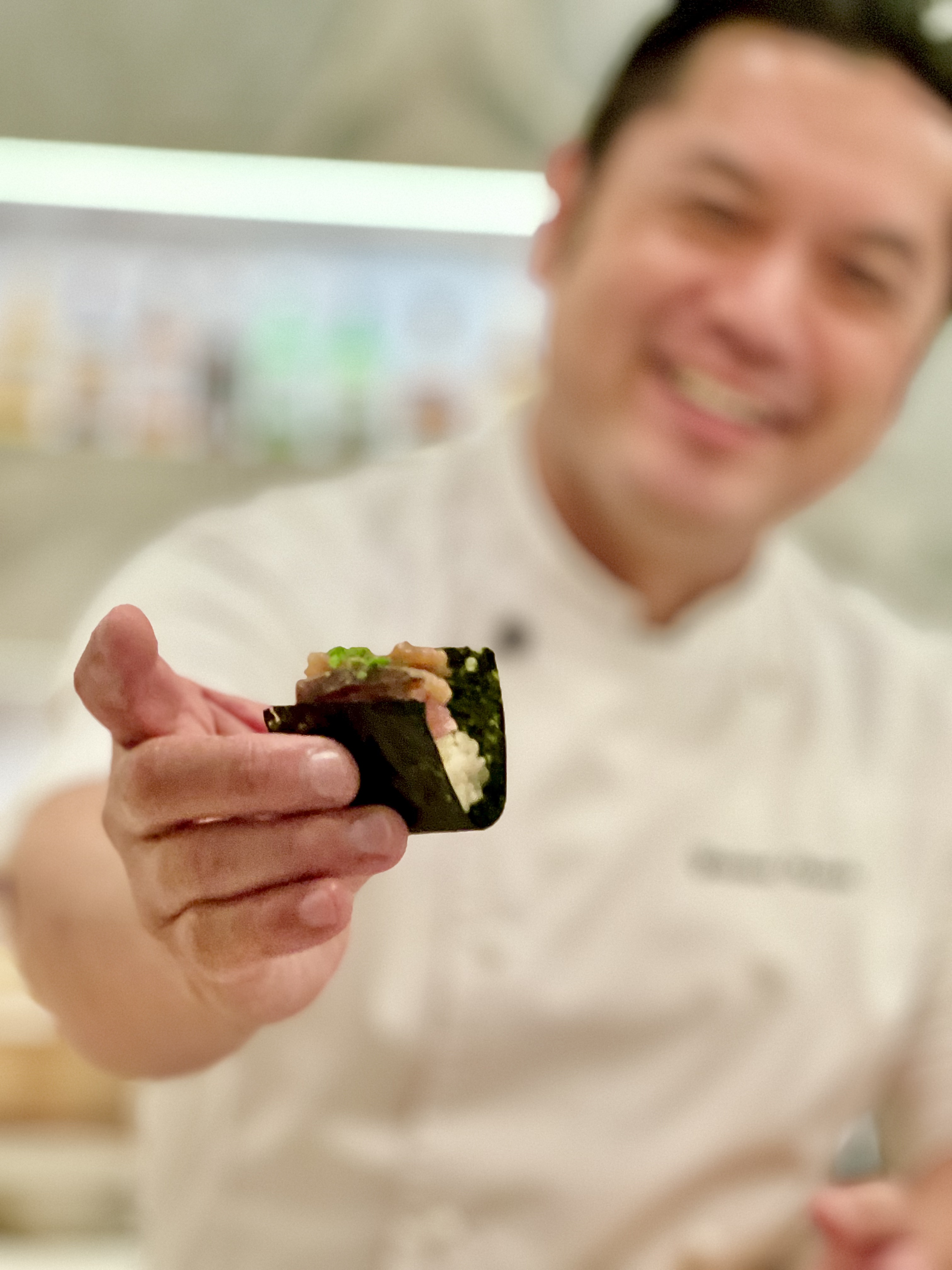 Tout commence en crescendo des saveurs des poissons de la pêche du jour, le chef Yasunari, telle une offrande de son travail, vous pose le nigiri de Loup sur votre assiette. C’est presque avec fébrilité que vous le prenez et le portez à votre bouche et là, vous découvrez, vous ressentez, vous savourez, vous vous étonnez. Oui, vous comprenez alors que vous n’aviez jamais ressenti cela pour un sushi…. mais aviez-vous déjà mangé un véritable sushi préparé en grande tradition par un maître ?