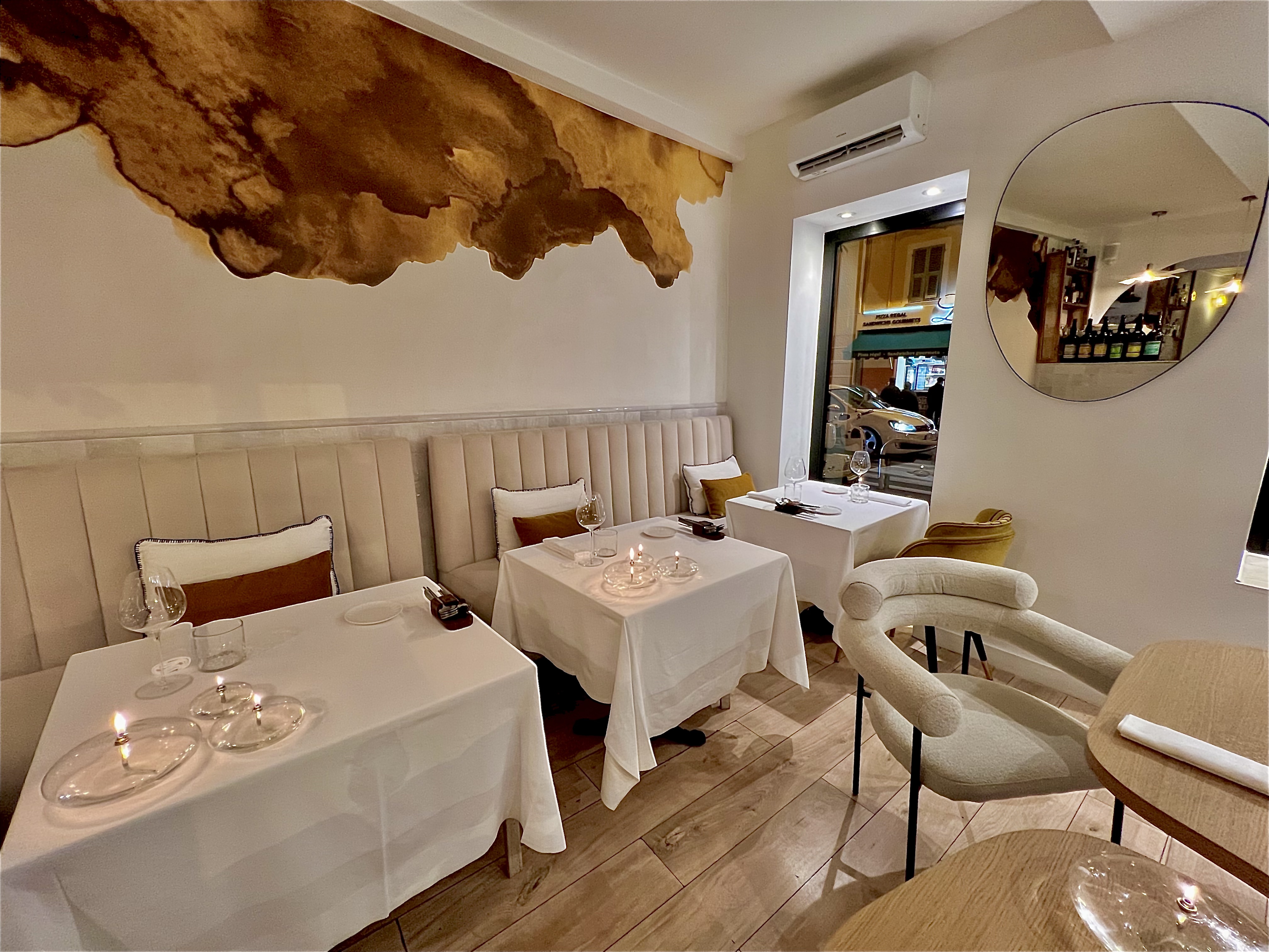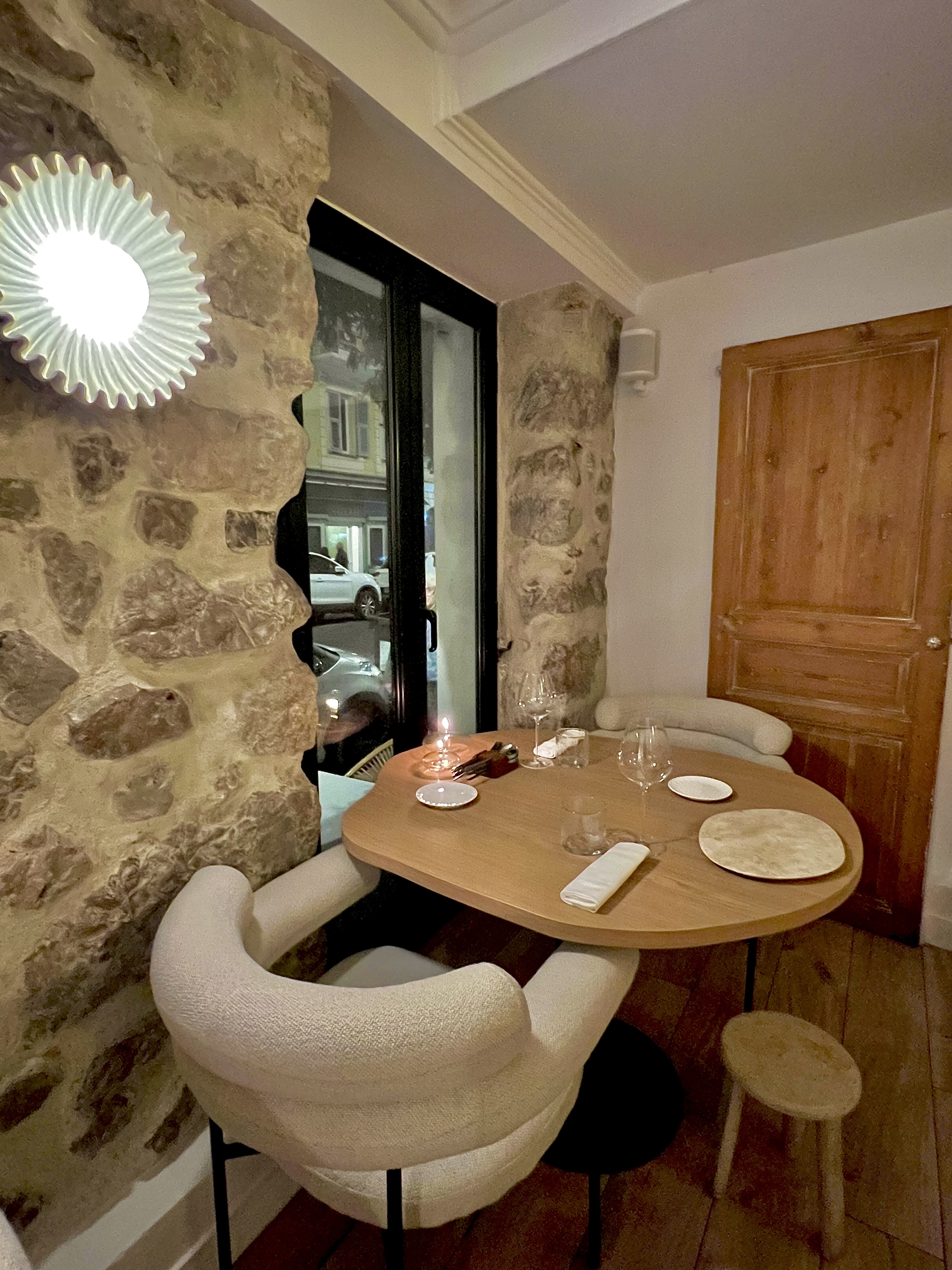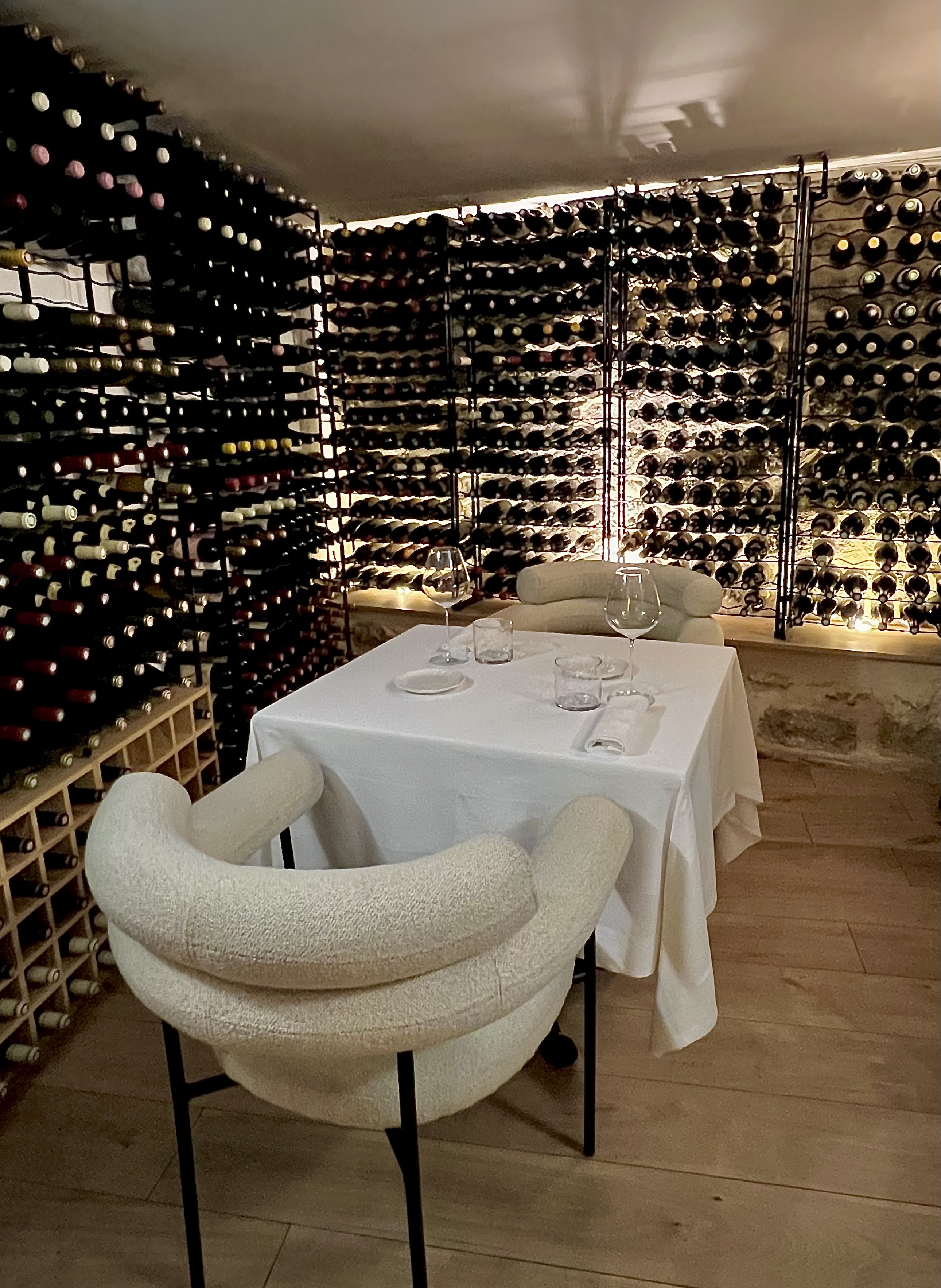 La salle n’est certes pas grande, mais elle a tout d’une maison chaleureuse. Les nouvelles tables et fauteuils, au confort et au toucher charnel, apportent le cossu et le chic. La salle en sous-sol, d’une autre atmosphère plus intime et plus posée, délivre son charme à l’image de la table pour deux au milieu de la belle cave à vin.