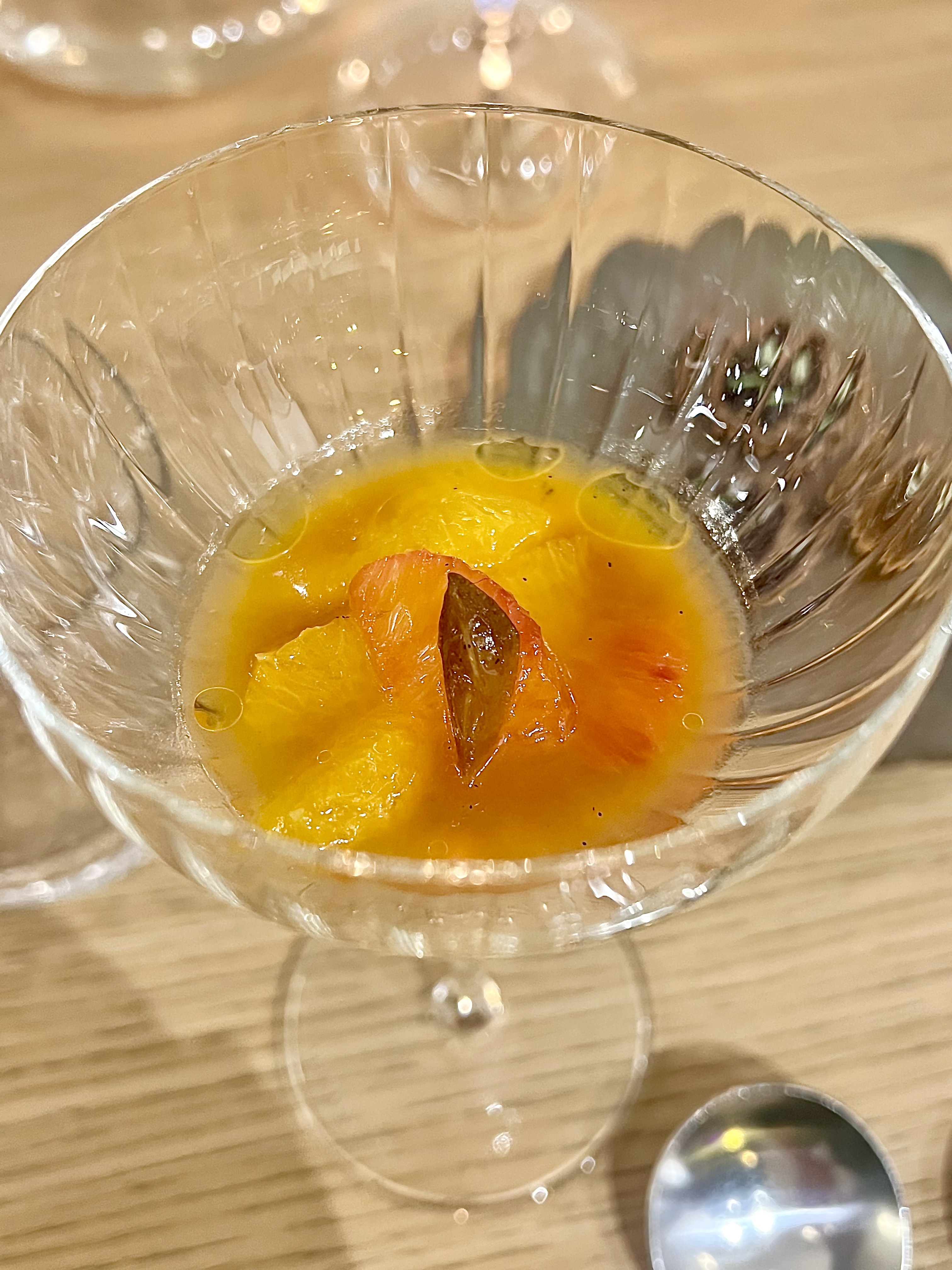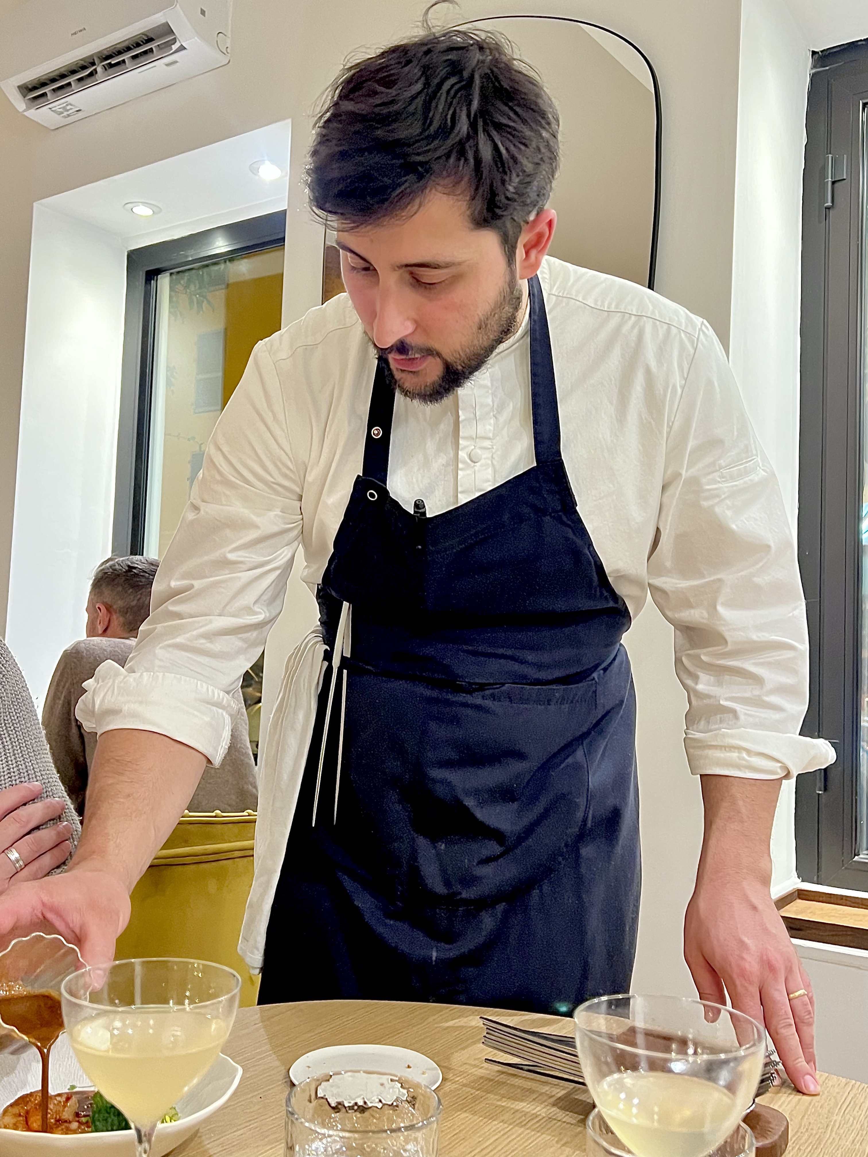 Les cuissons sont en excellence de la ferveur du produit, les sauces ont cette puissance et structure incroyable du multidimensionnel d’un deux étoiles : le sabayon, le dashi ou le beurre blanc se lient de bonheur d’une vinaigrette ou d’un jus et le tout devient une sauce à part entière, d’une irréelle onctuosité qui évolue en bouche au fur et à mesure de la dégustation. Tout s’imbrique avec simplicité et évidence, entre vivacité, force et délicatesse, le tout ajusté d’une parfaite et marquante gourmandise. Bref, c’est une cuisine qui vit et qui respire de toute sa valeur.