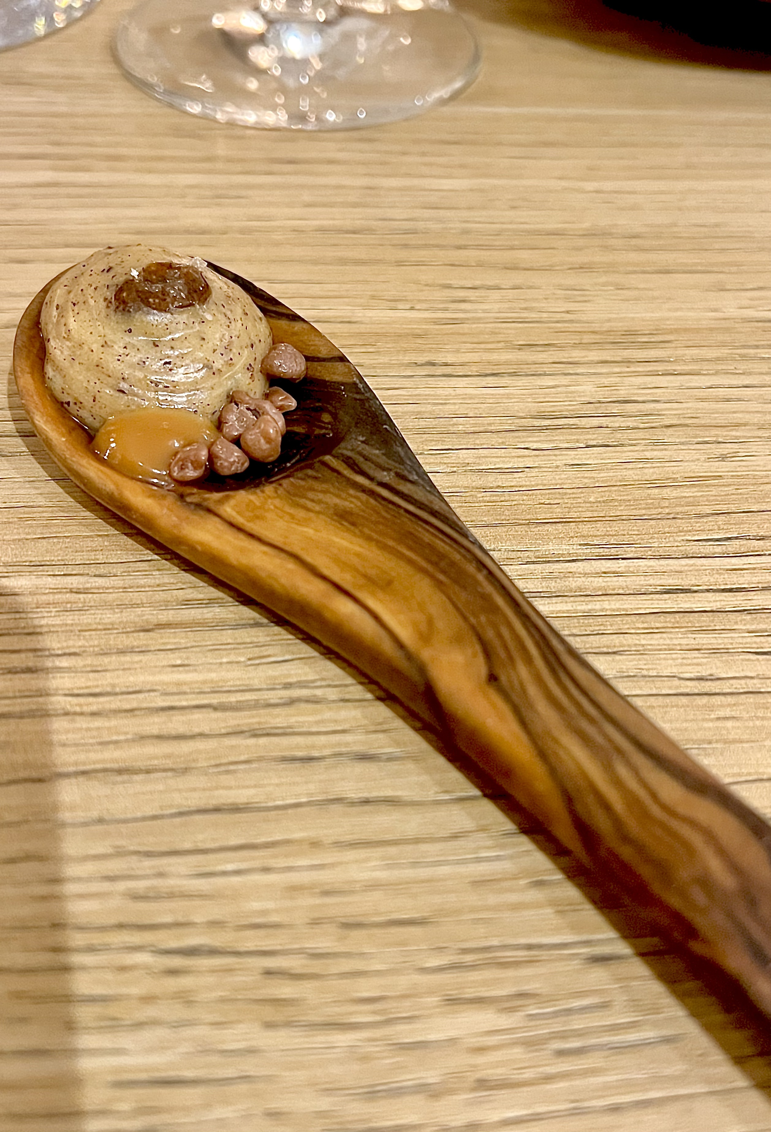 Le menu « Les yeux fermés » est brillant et enthousiasmant, quant au menu « Premiers pas », réservé aux moins de 30 ans, il est une douce et ingénieuse façon de proposer un menu étoilé aux plus jeunes gastronomes sans les ruiner.