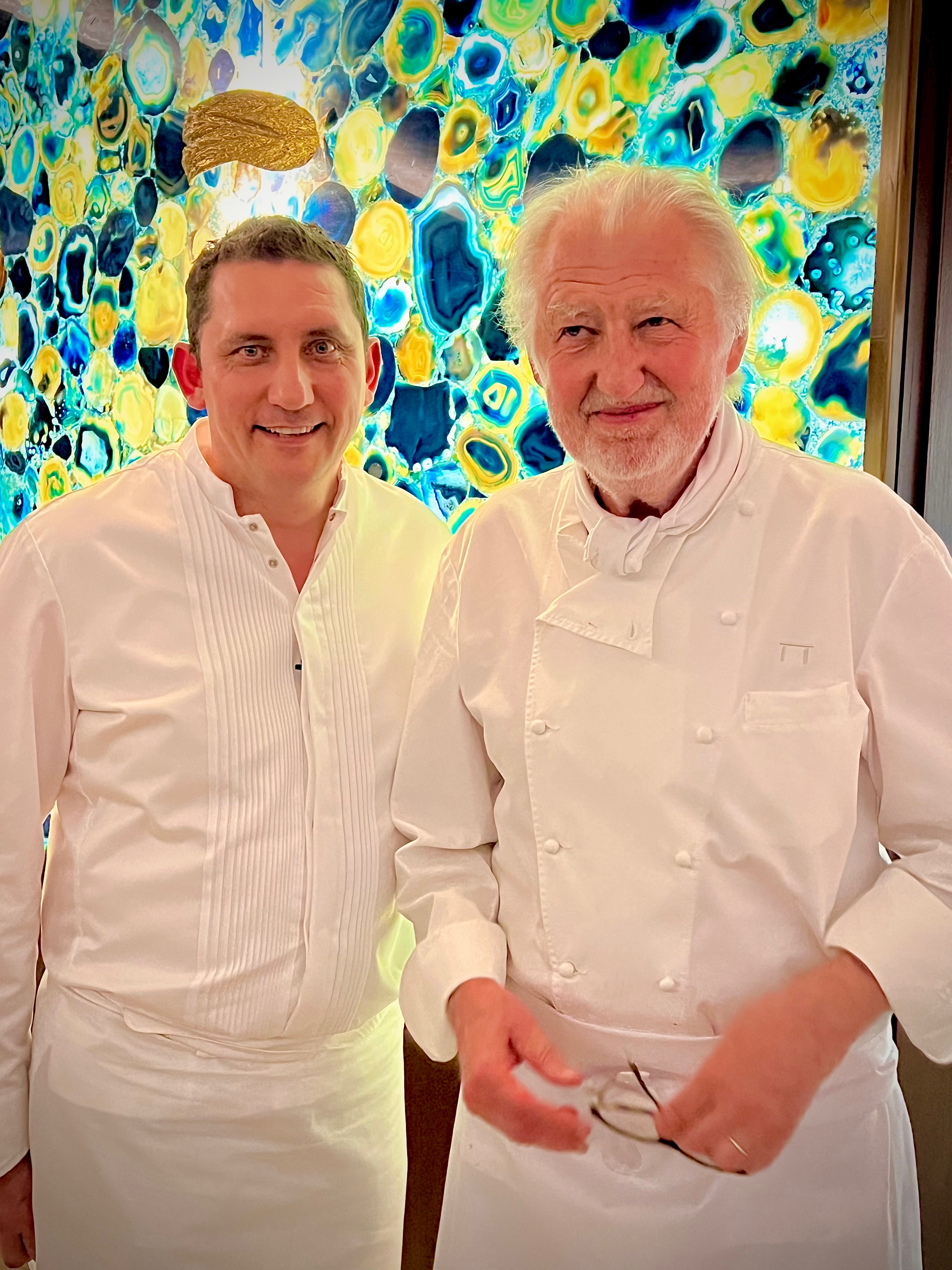C’était donc une évidence pour le chef Lory d’inviter au Grill* Pierre Gagnaire, qui était accompagné de son chef Thierry Méchinaud, pour ce premier dîner d’ouverture du Festival des Étoilés. Un dîner qui a fait salle comble et qui a été hors du temps, au firmament de l’excellence, suspendu dans les étoiles, entre précision, poésie, émotion et gourmandise.