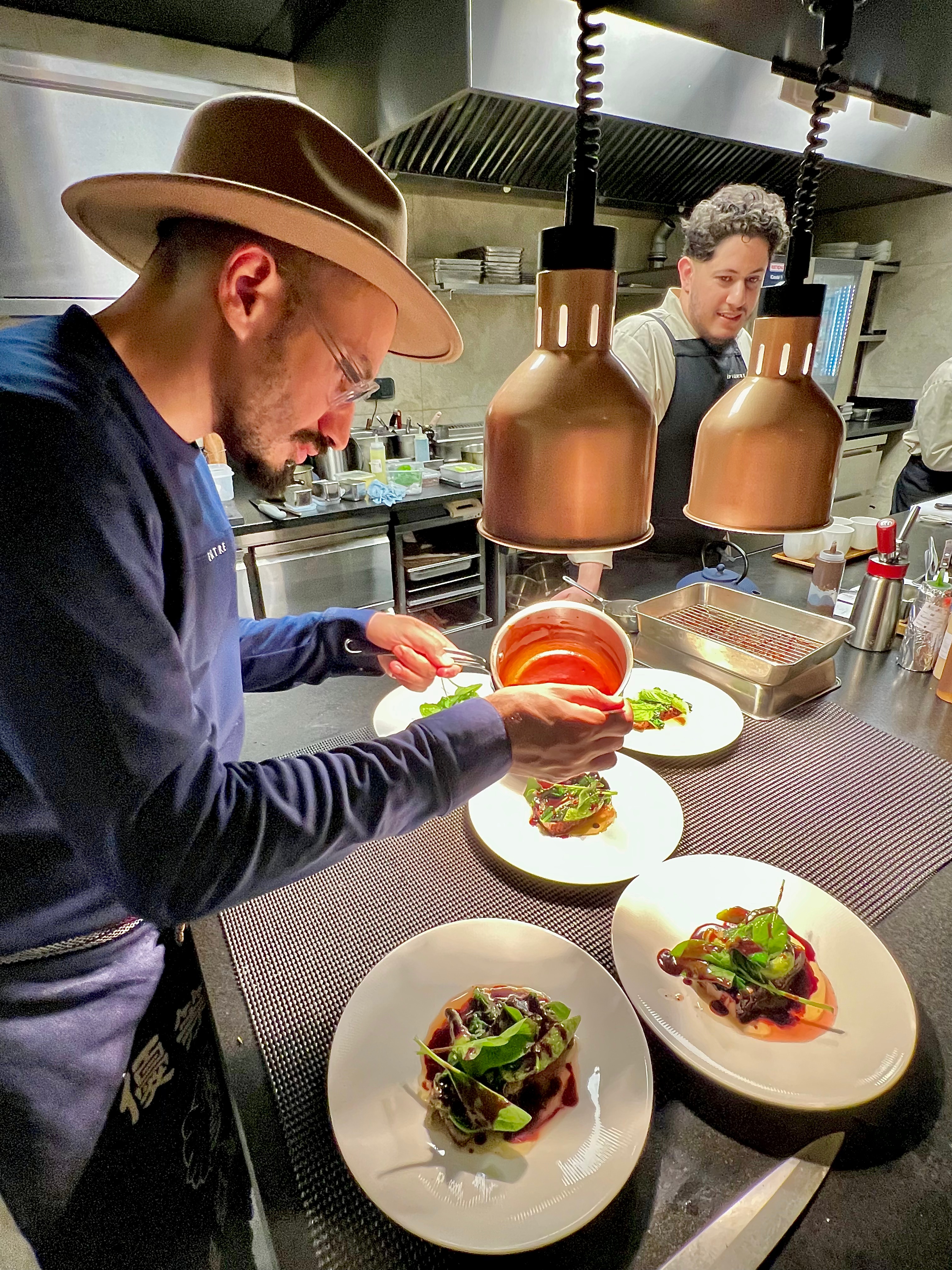 C’est une rencontre fulgurante et décisive pour la suite de la carrière du jeune Selim : faire partie de la fameuse Teamtchok du chef Ravin qui deviendra son mentor absolu. Il commence par le très actif service banquet du Monte-Carlo Bay Resort, puis passe pour l’été au snacking du lagon qu’il gère avec performance. À la fin de la saison, Marcel Ravin, qui voit en lui un grand potentiel, lui propose de continuer l’aventure, mais cette fois au restaurant gastronomique Le Blue Bay pour lequel il brigue une étoile.Il y restera un peu plus de trois ans, à gravir les marches de commis jusqu’à chef de partie sénior. Sélim parlant anglais, le chef lui demande de s’occuper et de travailler avec le très célèbre chef libanais Maroun Chedid, venu pour des dîners à quatre mains à Monaco, et c’est tout naturellement que son mentor lui demande de l’accompagner à Beyrouth pour la semaine gastronomique monégasque au Liban. Voulant découvrir le monde, Sélim quitte Monaco et part en 2014 à Singapour, ville qui le fascine pour sa mouvance et sa dynamique scène gastronomique. Il y prend sa première place de Sous-chef au Bam !, table réputée d’une cuisine fusion hispano-japonaise signée du chef étoilé espagnol Pepe Moncayo. Très vite, le chef valide ses plats qui se retrouvent à la carte. Ronan Kervarrec (alors chef deux étoiles à la Chèvre d’Or) en visite à Singapour vient dîner au restaurant. Séduit par la prestation de Sélim, il lui propose de rejoindre les équipes du mythique établissement de Eze. De retour sur la Riviera, c’est en tant que Sous-chef que le jeune Sélim prend en charge Les Remparts et Côté Jardin. A la fin de la saison, Thierry Naidu, l’emblématique directeur, le félicite pour son travail et lui soumet l’idée de devenir Chef de l’Hôtel Le Cagnard à Cagnes-sur-Mer dans le but de récupérer l’étoile perdue. Une offre qu’il décline car il s’est déjà engagé à revenir au Blue Bay. Il décline également avec regret celle de Julien Royer, à Singapour, de faire partie de la nouvelle aventure gastronomique pour l’ouverture de son Odette au National Gallery, qui sera très vite triplement étoilée. De retour auprès de son mentor, Sélim devient un de ses petits « scarabés » de confiance, tel un double, connaissant parfaitement son univers et son fonctionnement créatif. Il l’envoie dans un premier temps plusieurs mois en Martinique, à son restaurant La Table de Marcel, en renfort des chefs sur place Geoffroy Szamburski et Lindley Lanappe. Puis à Lyon afin d’épauler le chef Anthony Clorennec pour l’ouverture de sa nouvelle adresse : Le Grand Réfectoire au Grand-Hôtel-Dieu. Il participe également et grandement à l’écriture du livre des 10 recettes Best Of Marcel Ravin aux éditions Alain Ducasse. Il découvre avec surprise et honneur que le chef lui rend hommage en y ajoutant une de ses recettes (le rouget de roche, basse température, pappardelles, agrumes et jus vineux) avec cette mention : « Un jeune cuisinier, à mes côtés depuis de nombreuses années, a créé ce plat plein d’émotions pour La Table de Marcel, en Martinique… Hommage à ce passionné, promis à un avenir certain ». En 2018, il participe au Concours Olivier Roellinger Ethic Ocean, où il remporte le 1er prix. L’année suivante, il a cette profonde envie de travailler et d’apprendre auprès de la meilleure femme Chef du monde : Dominique Crenn. Il la contacte et elle lui propose avec enthousiasme de venir faire un essai d’un mois dans son trois étoiles, qui se valide par un contrat d’embauche, mais, en raison d’un problème administratif sur place, il ne peut intégrer tout de suite les équipes. Il retourne en France et cherche un poste au plus vite. Les frères Tourteaux (Flaveur** Nice) parlent de lui à Alexandre Mazzia*** qui le prend dans sa brigade, mais un désir latent depuis quelque temps refait surface et devient alors viscéral : le projet d’ouvrir son restaurant et de raconter sa propre histoire. Deux amis d’enfance et de confiance prennent part financièrement à ce projet, qui va hélas être très vite stoppé par l’arrivée du Covid. Après la période de confinement et suite à une demande, il devient chef à domicile aussi bien pour des familles fortunées de la Principauté que pour des joueurs de foot réputés de la région, ce qui lui permet de mettre de l’argent de côté pour son restaurant et de voyager, notamment au Japon. Il respire, il dort, il vit chaque instant pour affiner, peaufiner son projet qu’il souhaite comme une maison : sa maison. Une fois le local idéal trouvé dans le quartier du port, tout devient concret : il réfléchit aux moindres détails, il dessine la cuisine, les meubles, les chaises, les tables : tout est fait sur mesure, il se fait épauler par l’architecte d’intérieur Marion Callegari Rejeb pour harmoniser l’ensemble. Pour accomplir sa mission de régaler ses hôtes, Sélim s’est accompagné en cuisine d’Hiseam Bardai, son Sous-chef, qu’il avait rencontré lors d’une six mains avec Samuel Victori aux Agitateurs*, il possède un très jolis parcours étoilé dans la région (La Chèvre d’Or** Arnaud Faye, La Passagère* Aurélien Véquaud, Arnaud Tabarec* à Cannes et La Flibuste* Eugénie Béziat) et a été chef à domicile.