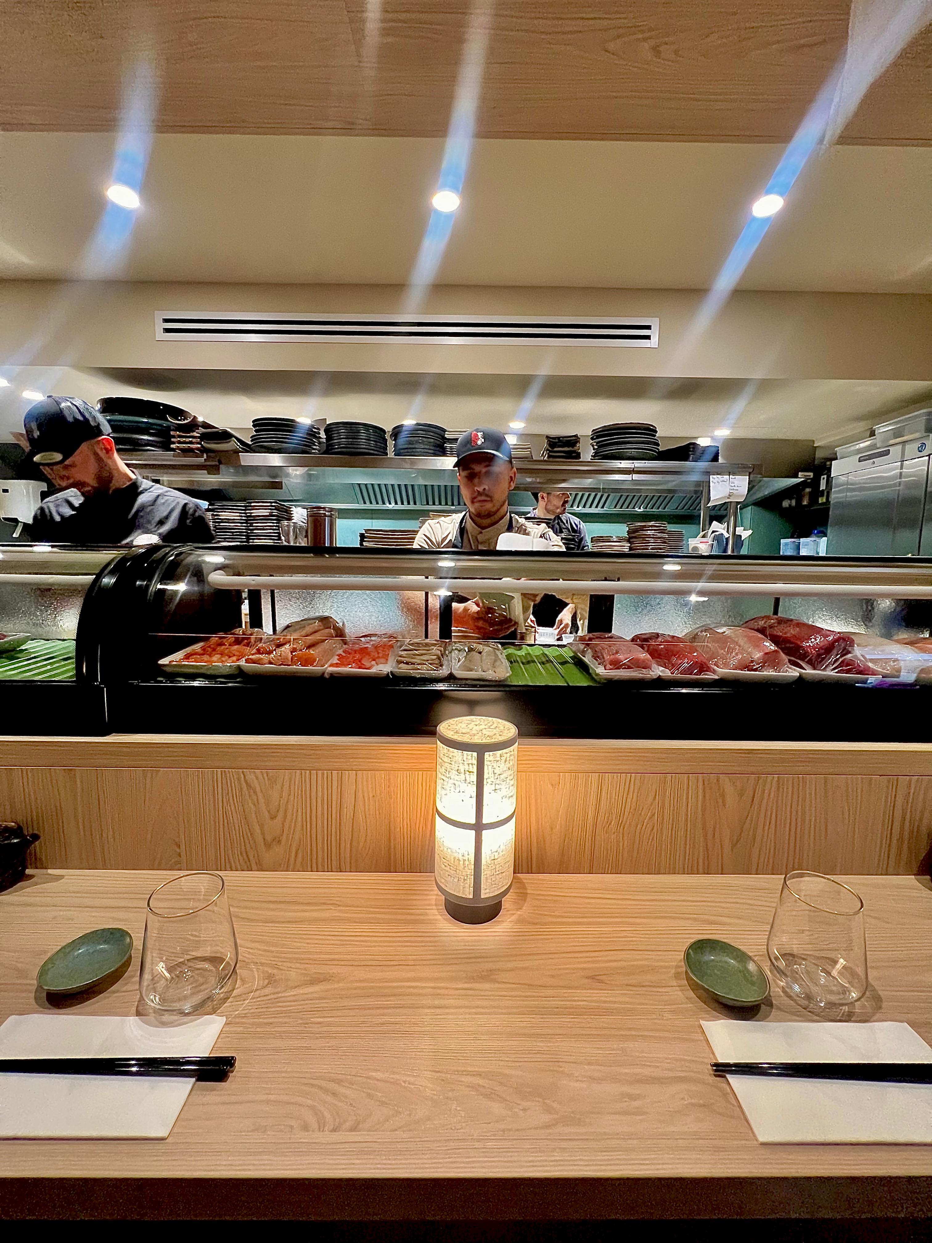 Cette expérience des sushis qui englobe les nigirizushis les makizushis, les temakizushis… se découvre dans toute sa valeur au comptoir où le chef prépare ces sushis au fur et à mesure de votre dégustation, que vous savourez le plus simplement possible, avec les doigts, et nul besoin de les tremper dans la sauce soja : ils sont tous assaisonnés dans la valeur des saveurs du produit. Les poissons, à la découpe ciselée, se délivrent infiniment au contact du riz vinaigré à la tiédeur du corps. La pointe du wasabi frais vient éveiller cette bouchée assemblée qui devient ainsi Nigiri. Le gingembre mariné n’est pas anodin, il a cette utilité de nettoyer et de raviver les papilles après chaque poisson.