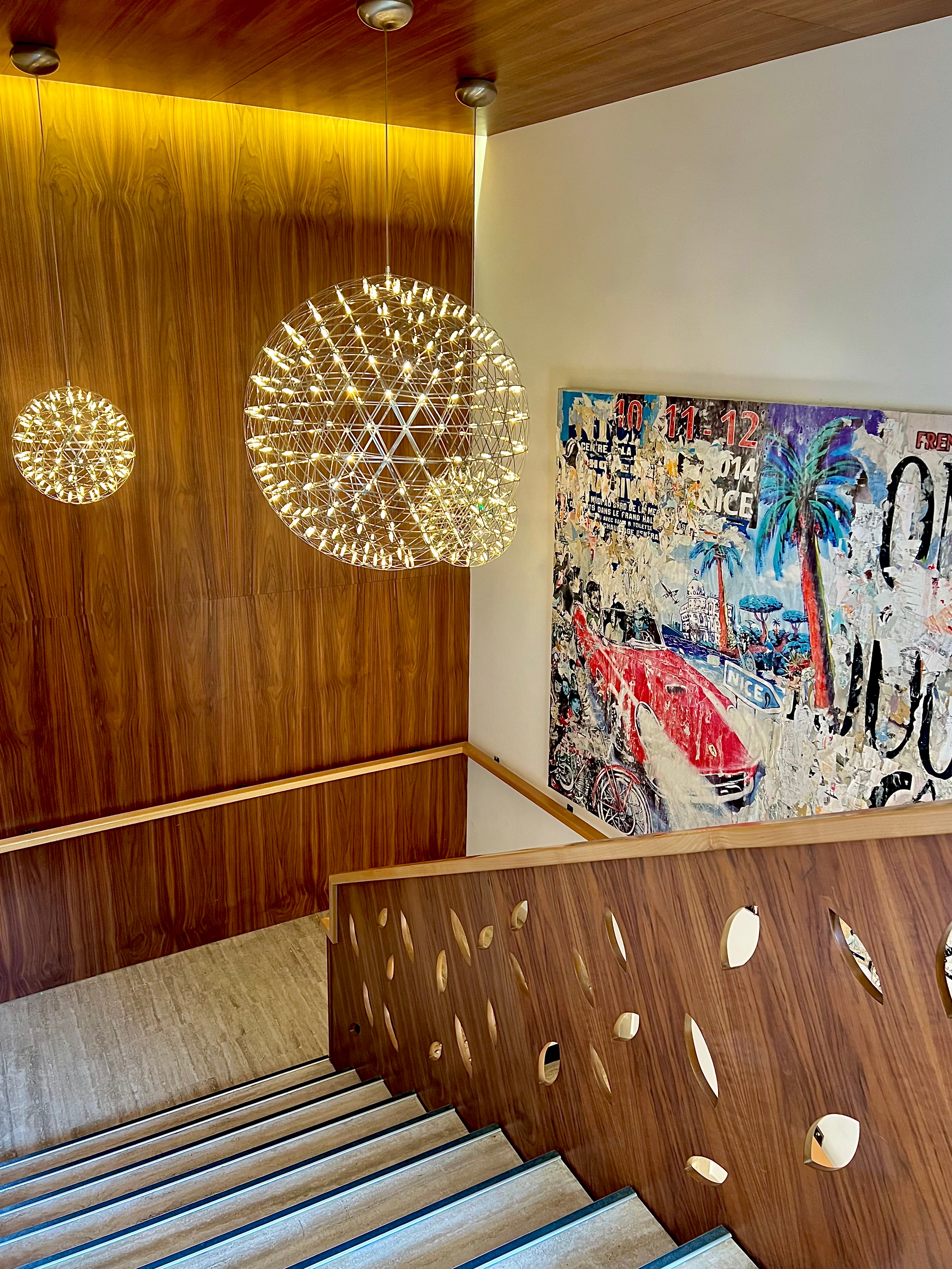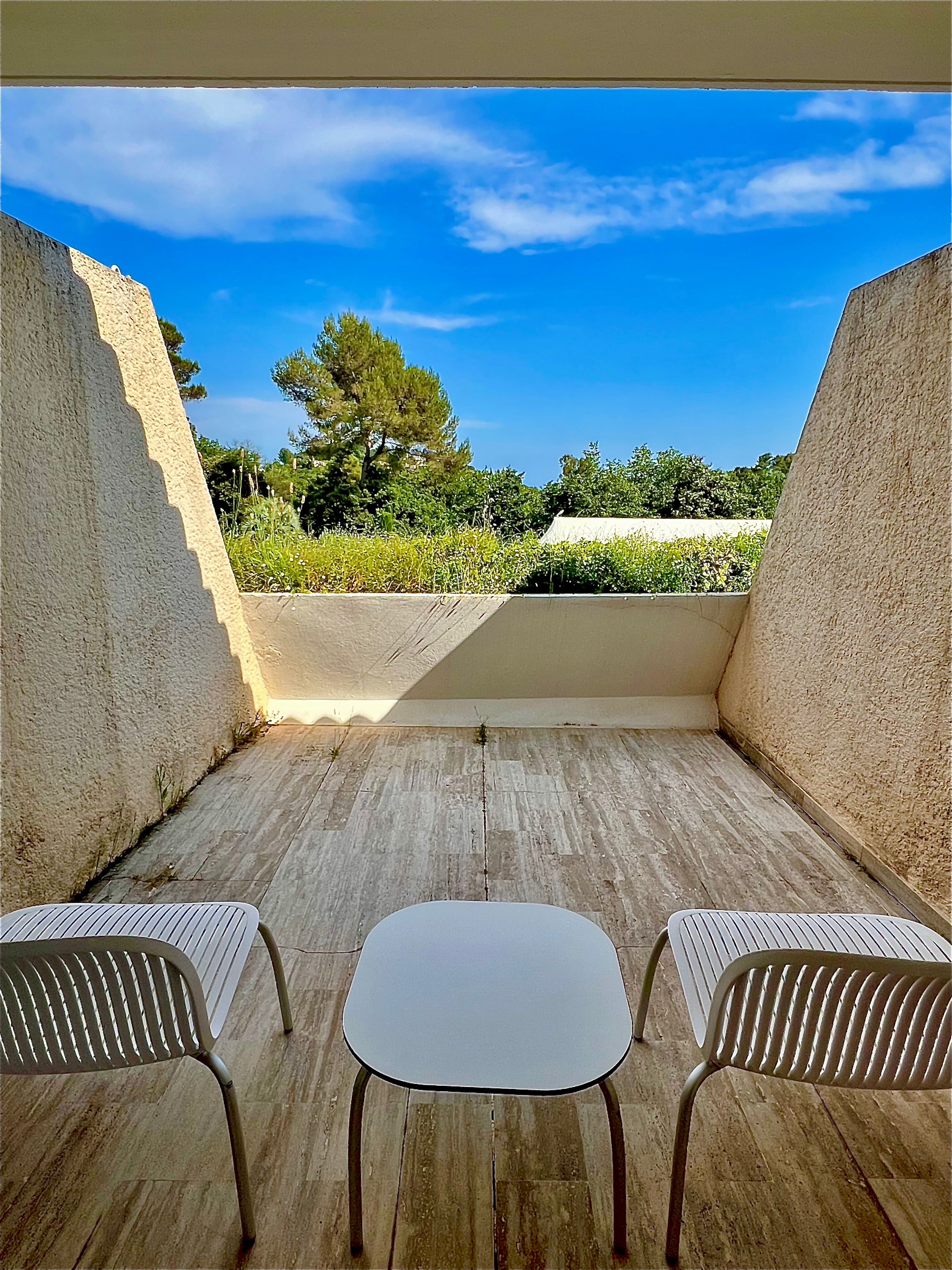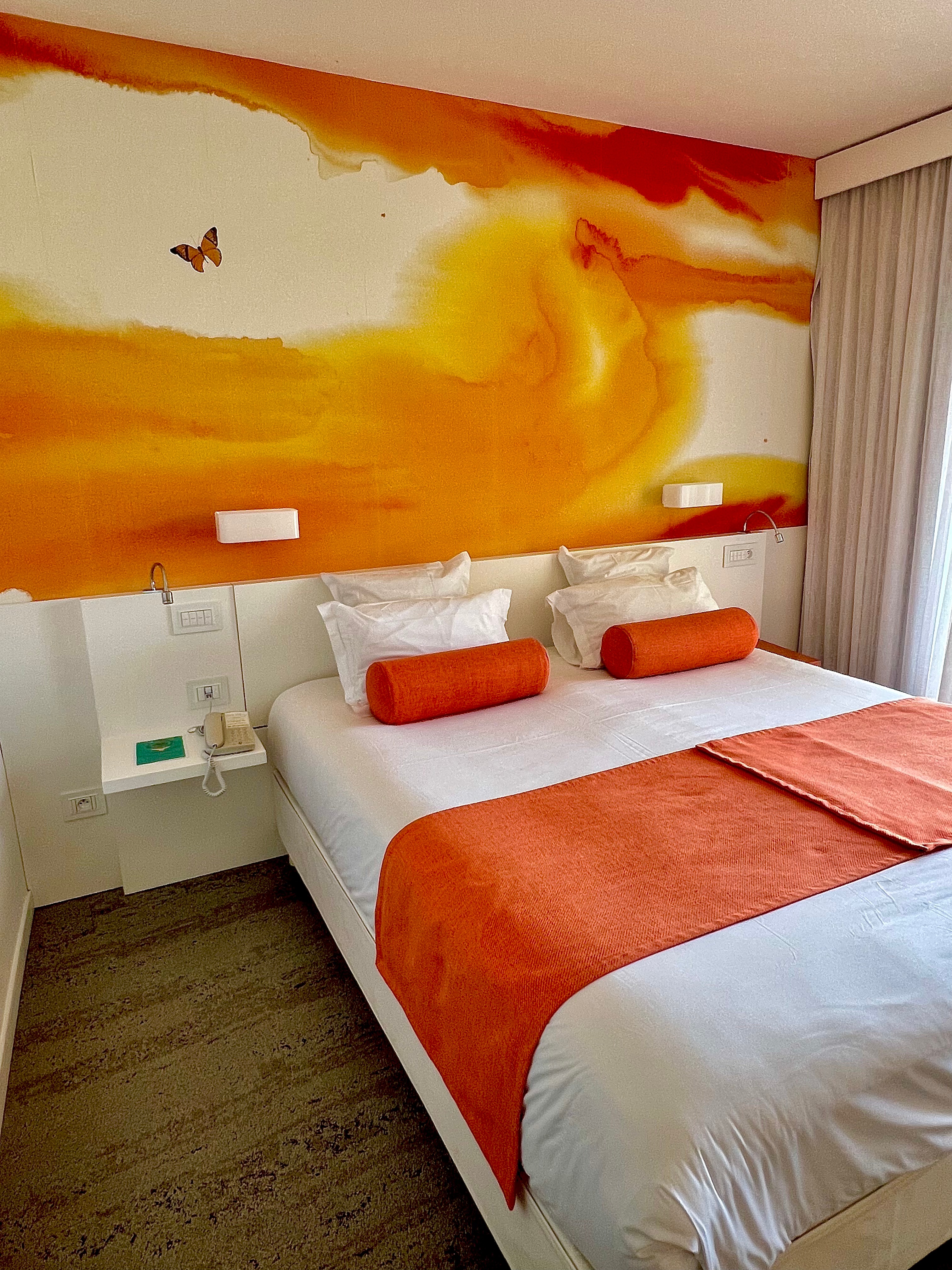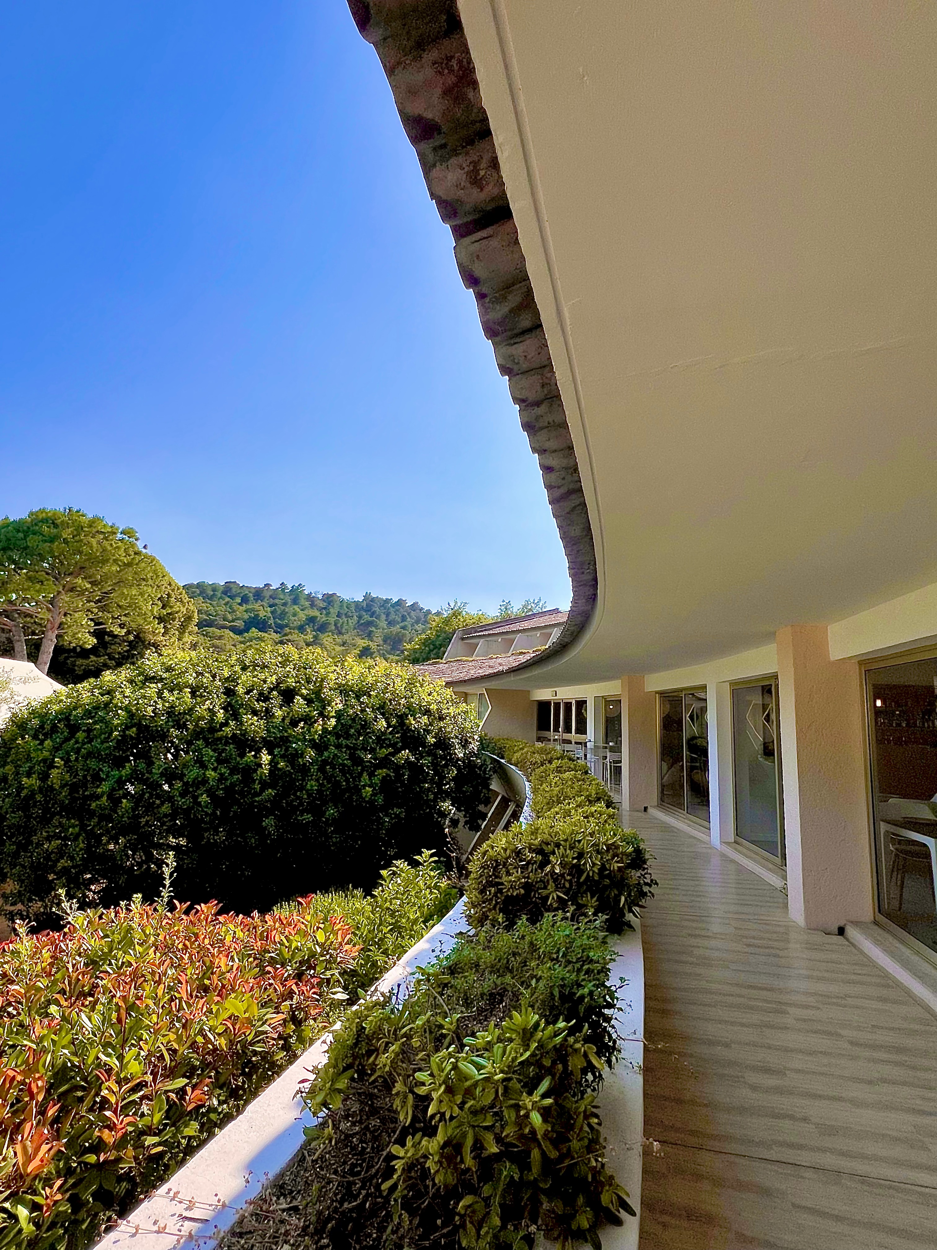 L‘Hôtel La Vague de Saint-Paul, cette virgule provençale en pleine nature, véritable vague d’architecture signée André Minangoy (emblématique architecte d’une époque, qui marqua fortement la région avec notamment le complexe immobilier Marina Baie des Anges de Villeneuve-Loubet ou encore le Vista Palace), n’est pas un hôtel comme les autres. Il a cette signature rare mêlant l’audace architecturale du béton et le charme d’une maison provençale moderne aux tuiles et murs de chaux. Après avoir été un lieu de séminaires et de formations pour une multinationale américaine durant plus de 30 ans, le bâtiment a été repris en 2012 pour être transformé en un complexe hôtelier haut de gamme. Le chantier a été confié à l’architecte suisse Maurus Frei qui a allégé et unifié le bâtiment dans son ensemble, en le soulignant d’une vaste ouverture sur l’extérieur et la nature environnante. Il a également désenclavé les espaces intérieurs et rehaussé le tout par des couleurs « peps » orange ou verte, respirant les années 70, notamment dans les chambres et suites.