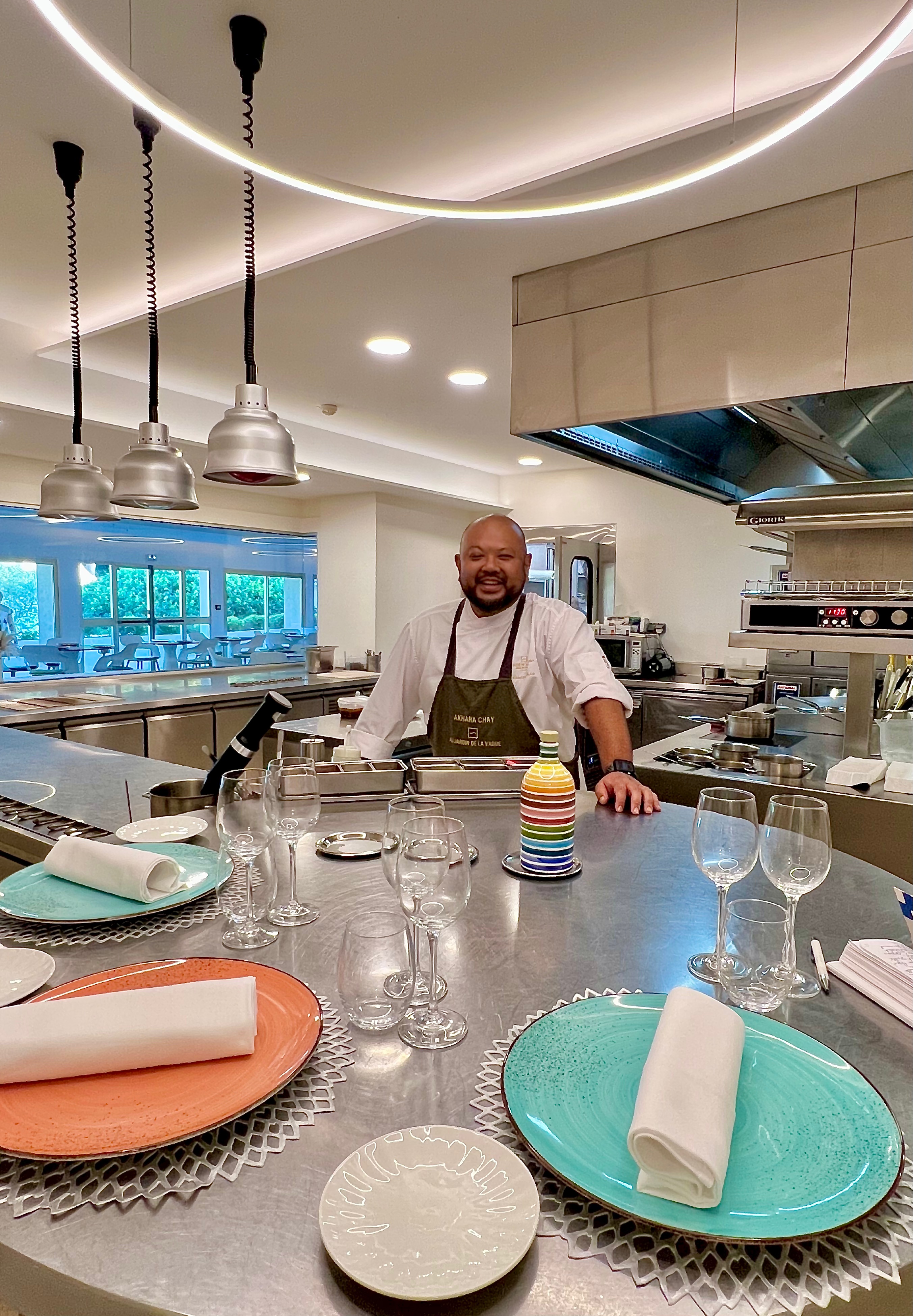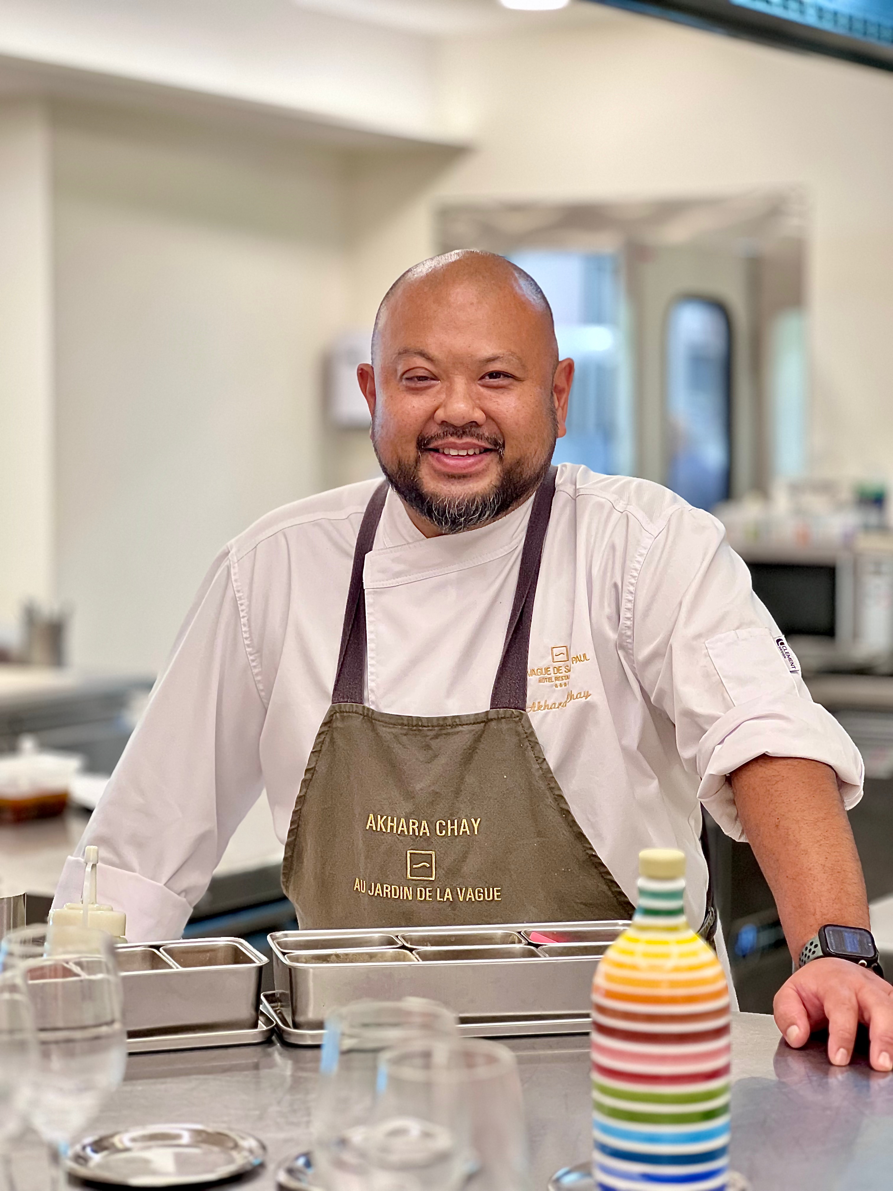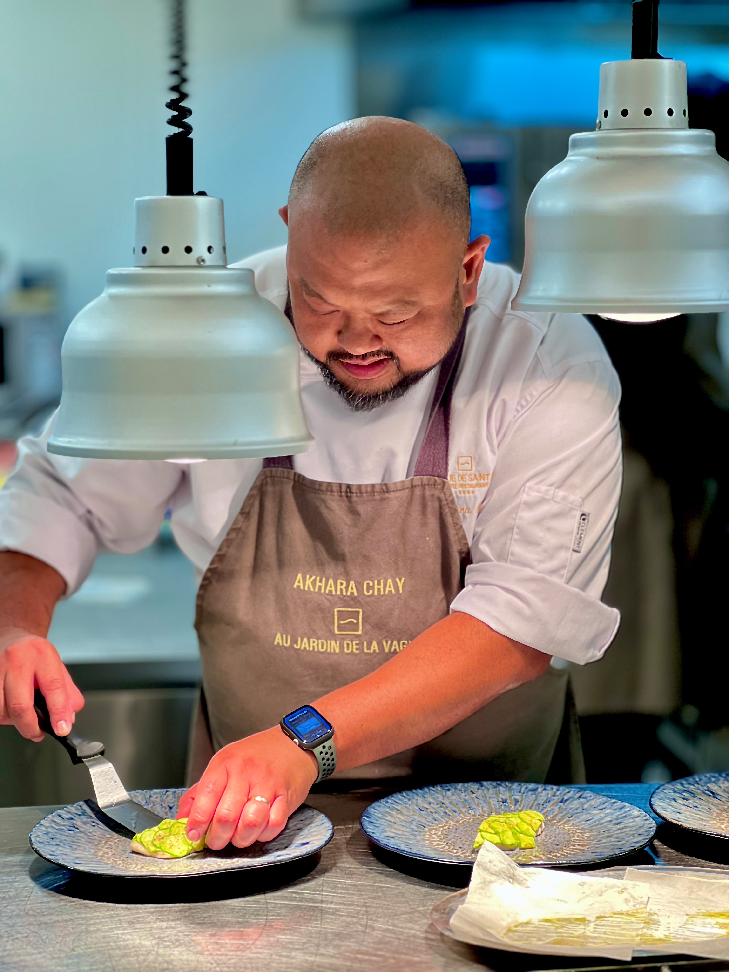 « La Table du Chef Akhara » Au Jardin de la Vague est l’une des plus authentiques et immersives Tables du Chef : chaleureuse, voyageuse et vivante, vous emportant dans une gastronomie enjouée qui encense les sens. Une expérience humaine et culinaire hors norme à ne pas manquer.