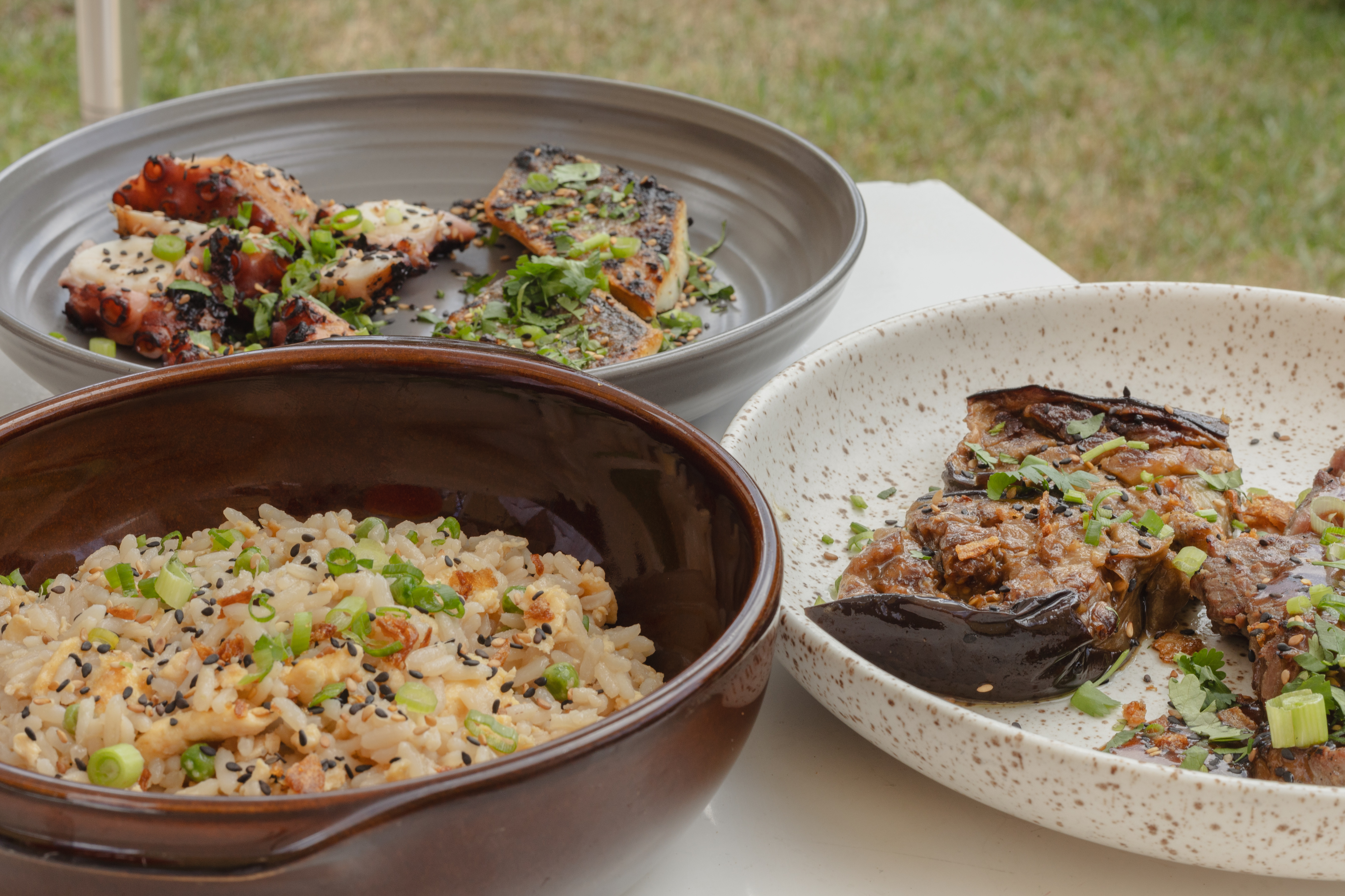 Barbecue japonais du dimanche : 3 entrées à partager – poisson – viande et 3 desserts à partager 49€ avec accord mets et vins 69€