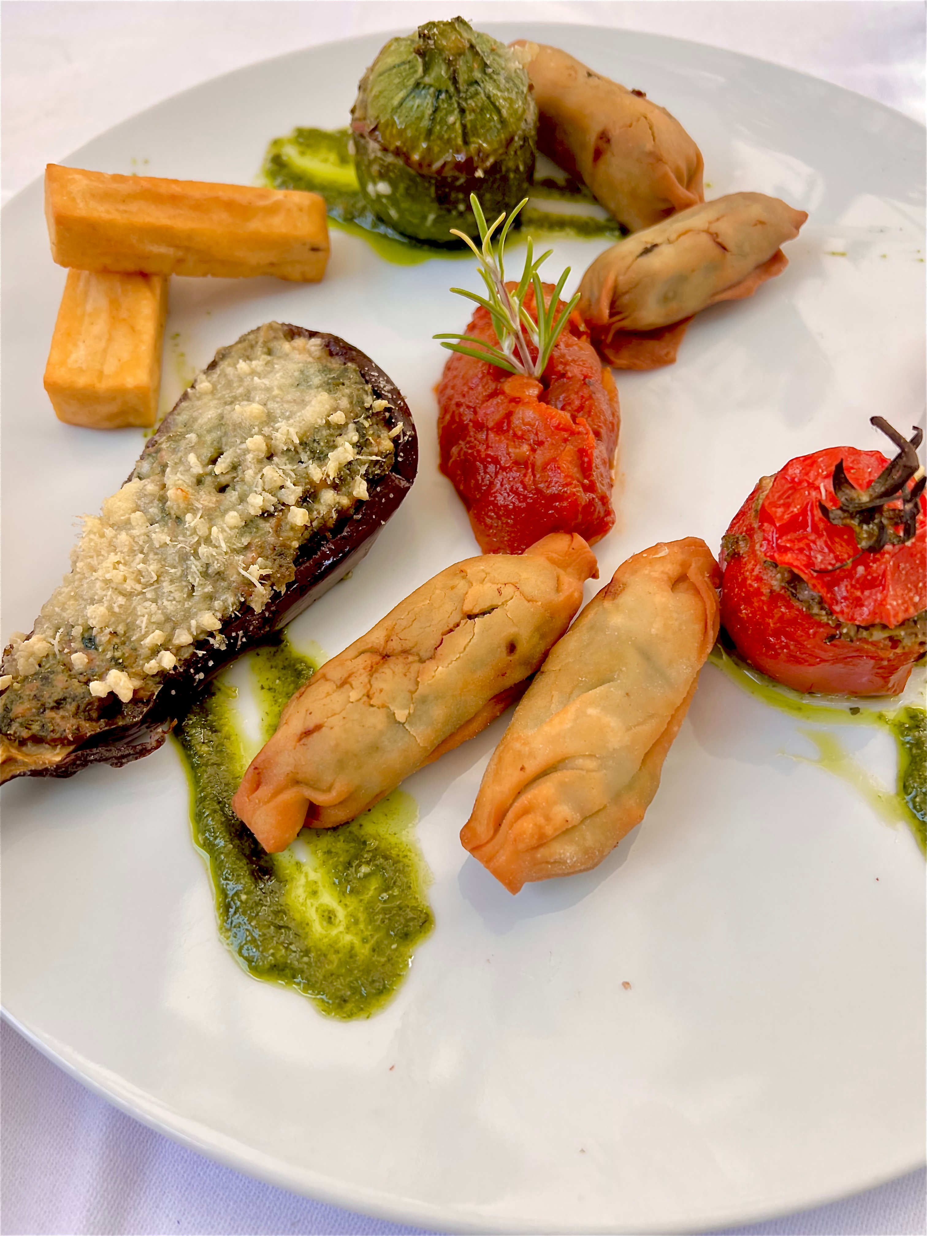 Les Petits Farcis à notre façon : tomates, courgettes, aubergines, ont ce moelleux et ce confit de la gourmandise du vrai et du fait maison. Le veau, à nouveau, vient délivrer son intime douceur à la farce, et le parmesan est le liant qui fait plaisir. L’idéal est de commander l’Assiette de Dégustation des Traditions qui regroupe les Barbajuans monégasques, les Frites de Panisses et les Farcis relevés de Pistou et de Saoussoun (sauce tomates)