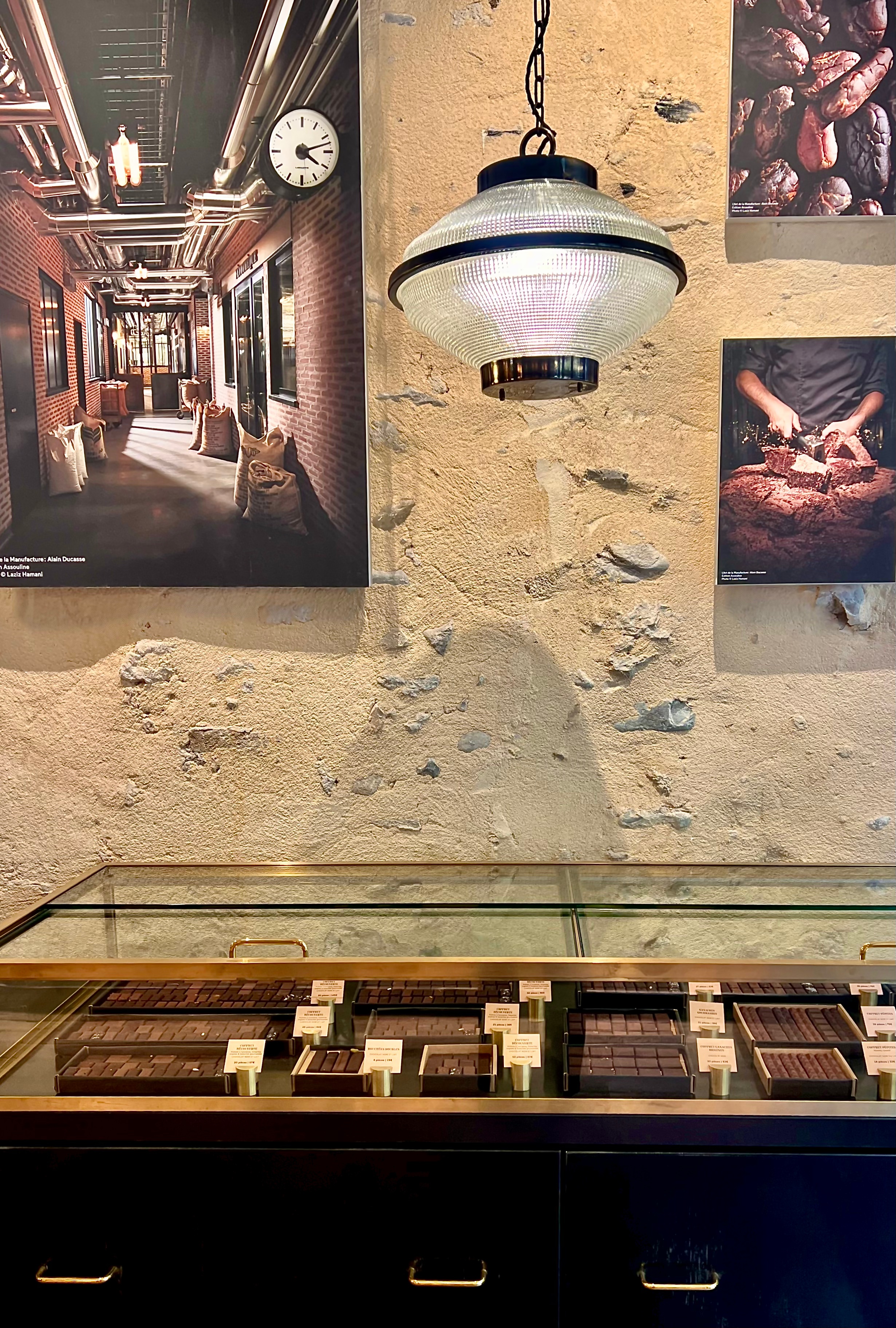 Chaque jour, le chef chocolatier-torréfacteur et son équipe répètent des gestes précis : torréfier les fèves, produire le chocolat de couverture, façonner les tablettes, préparer ganaches et pralinés, enrober les bonbons, fabriquer moulages et autres créations… tout est entièrement réalisé à la main. Brut, puissant et très peu sucré, le chocolat d’Alain Ducasse est devenu une référence incontournable : une fois goûté, impossible de revenir en arrière. Ce travail d’orfèvre, qui a valu à la Maison le label « Entreprise du Patrimoine Vivant », repose sur des années de recherche et une maîtrise unique du processus complet de fabrication.