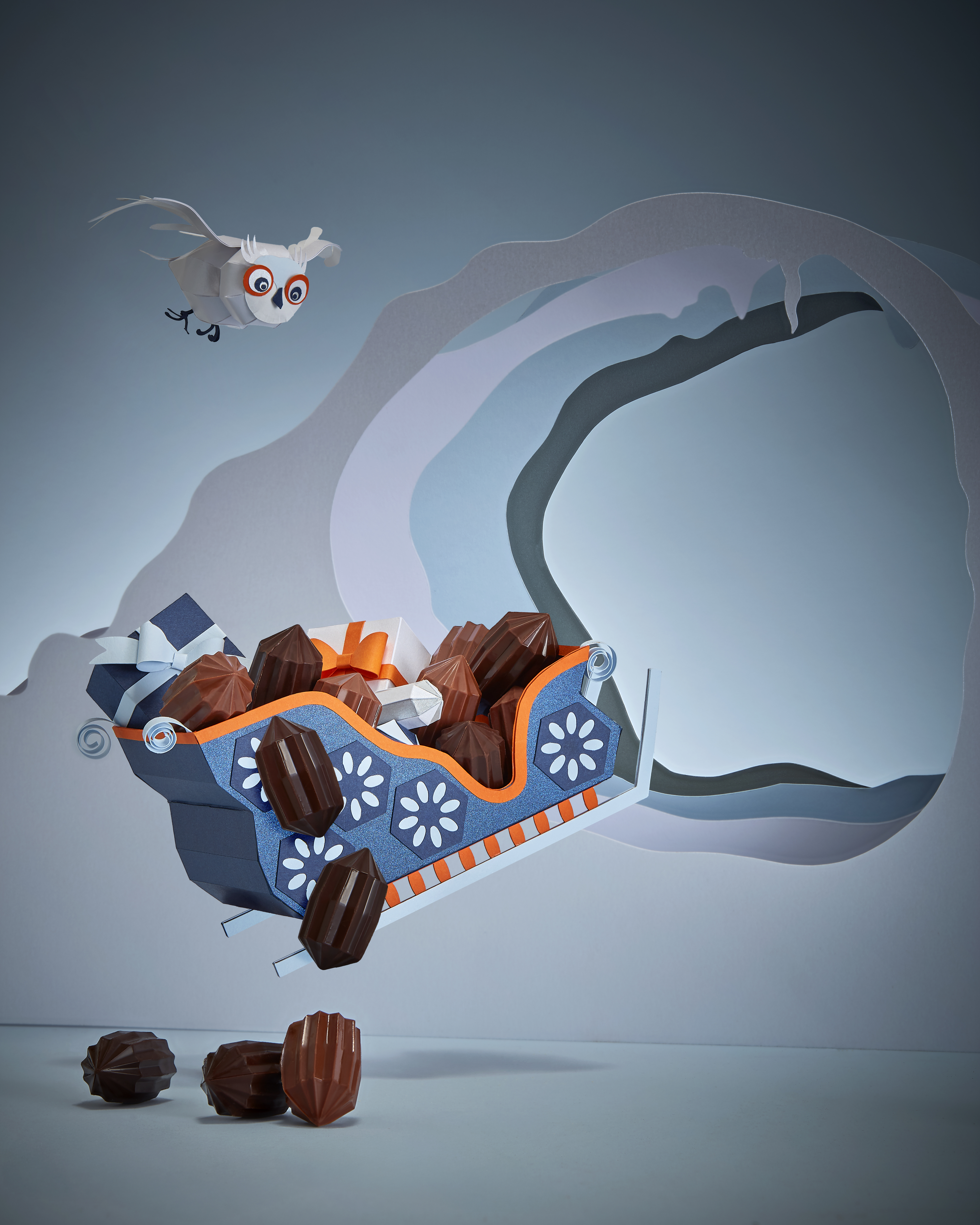 Le Calendrier de l’Avent, comme un théâtre miniature, est une véritable cueillette de douceurs et dévoile mini tablettes caramel-abricots, les sapins à assembler, les bonbonnières à offrir ou à garder, et les oursons en triple texture promettent un émerveillement gustatif total à la poésie d’un conte de Noël.