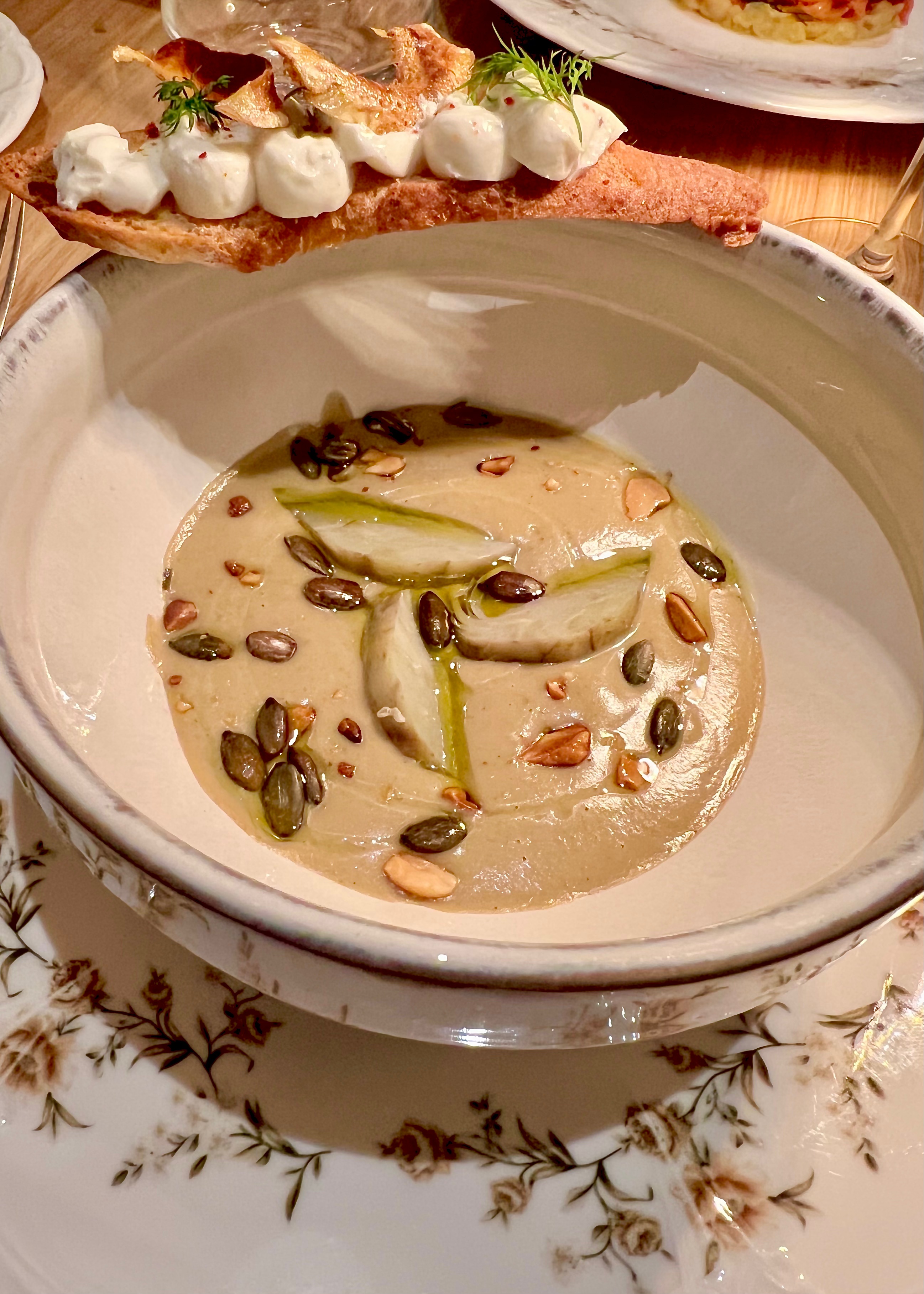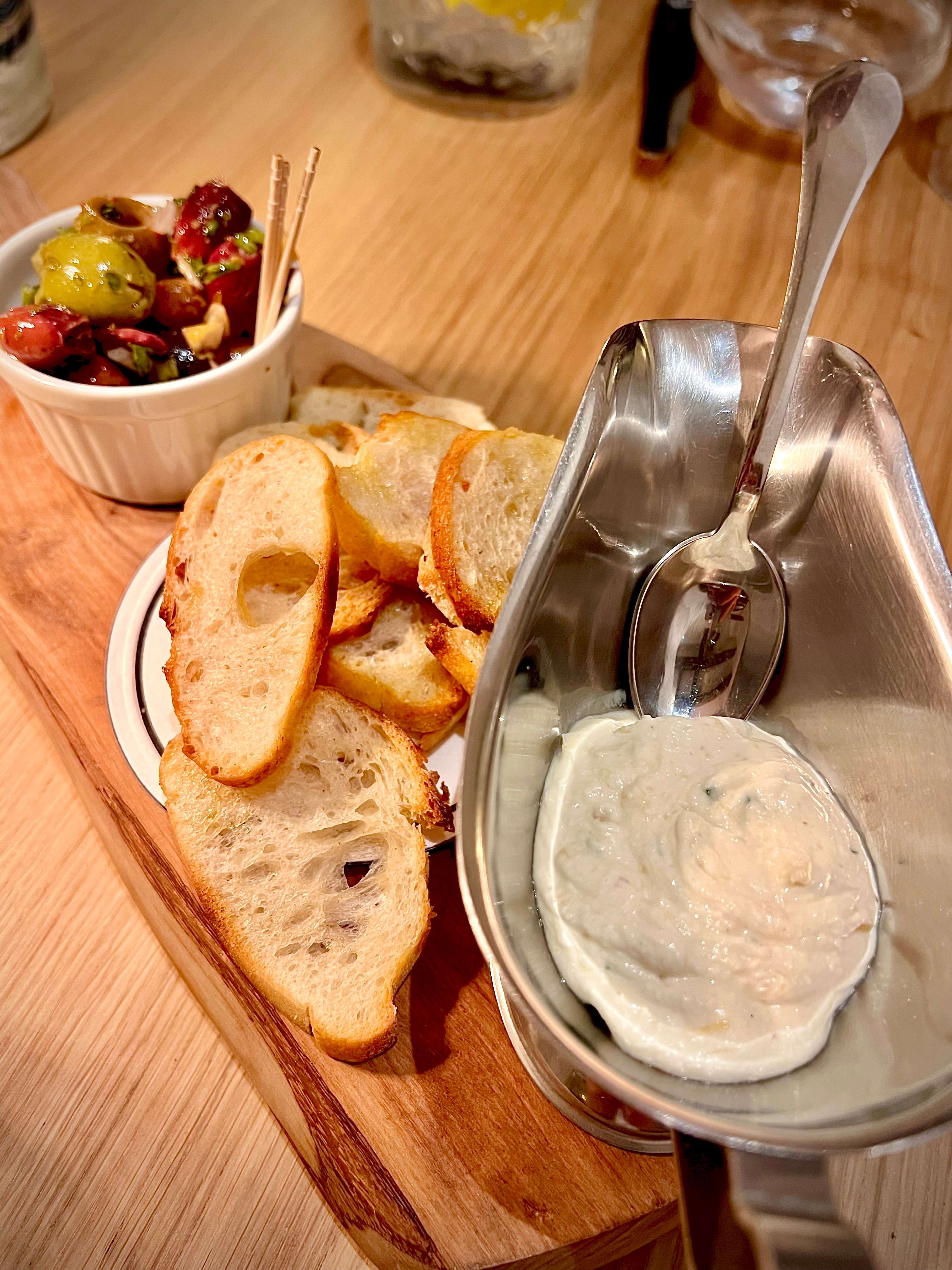 En guise de bienvenue, tout commence à table par une très agréable Crème fromagère herbacée à tartiner sur des petits toasts.