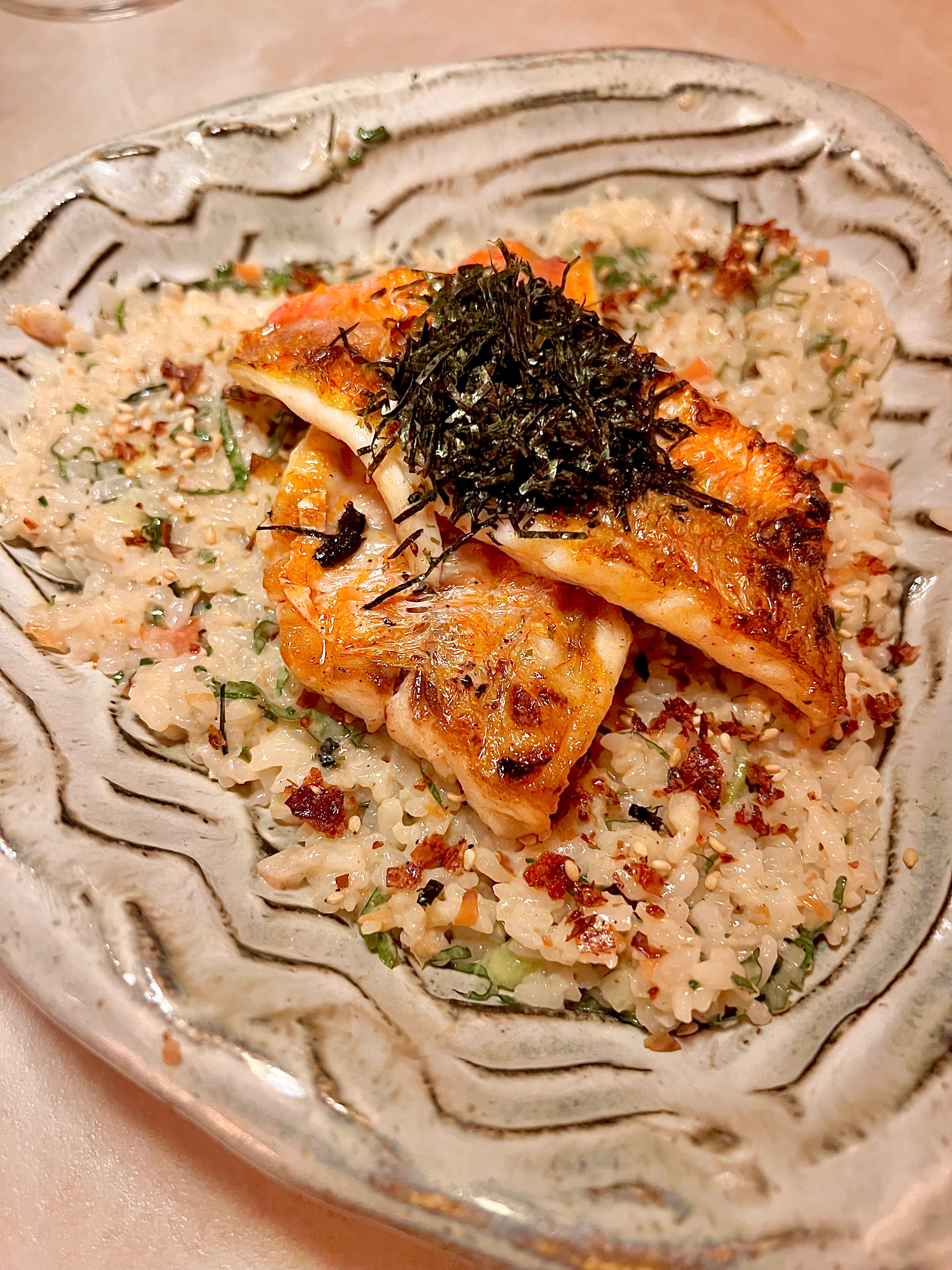 Aubergine miso, ratatouille & Hijiki : véritable coup de cœur et réussite de ce plat qui est l’essence de l’identité Zenirō, alliant les deux mondes avec perfection d’un Japon provençal, à l’image des Cœurs d’artichauts grillés, tartare de saumon new style (hélas non disponible lors de notre visite). L’envoûtante aubergine compotée, grillée et laquée au miso vibre avec la solaire ratatouille qui s’anime de l’iode des fines algues hijiki. Le souvent trop galvaudé « umami » n’est pas loin.