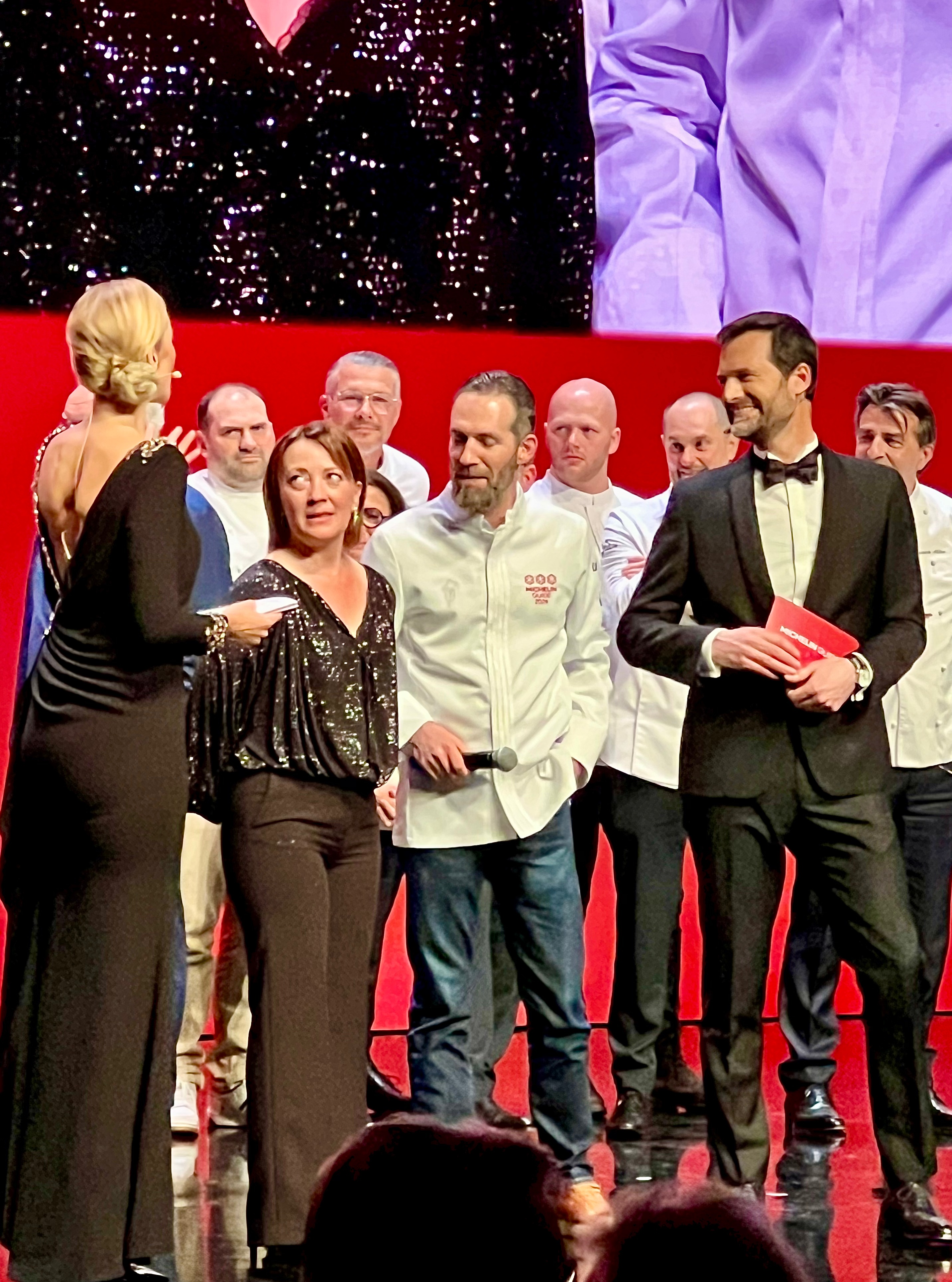 Au cours de cette soirée, plusieurs moments ont profondément ému l’audience, notamment lors de la remise du Prix du Chef Mentor à Pierre Gagnaire. Ovationné par ses pairs et par l’ensemble des professionnels présents, il a reçu un hommage vibrant, salué par une standing ovation empreinte de respect.