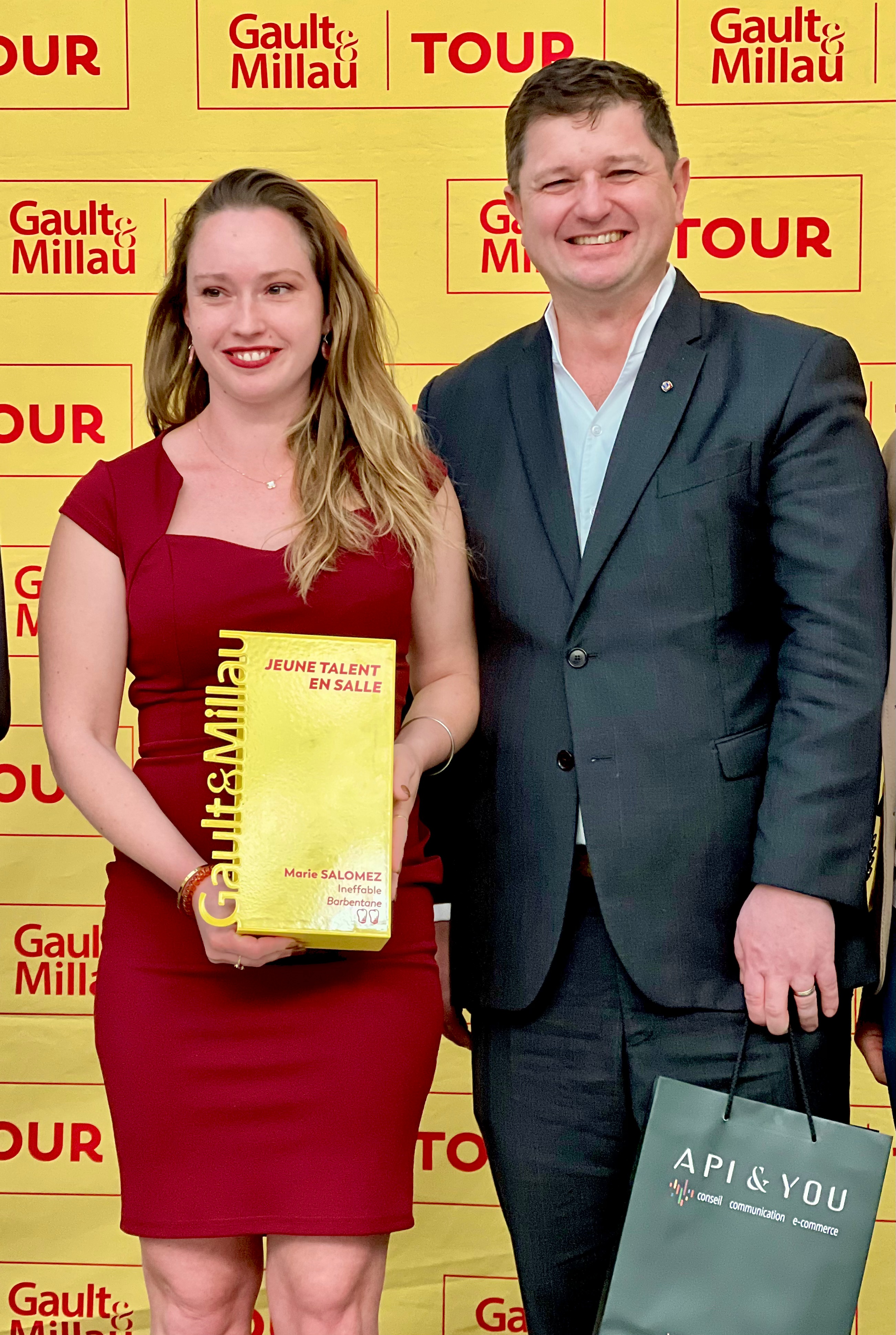 Le prix Jeune Talent en Salle a été attribué à la brillante Marie Salomez, dont le parcours dans de grandes maisons telles que Bras ou Franck Putellat fait d’elle une accompagnatrice experte des amoureux de gastronomie. À Ineffable, à Barbentane, elle raconte les plats du chef Nicolas Thomas avec simplicité, élégance et intimité.