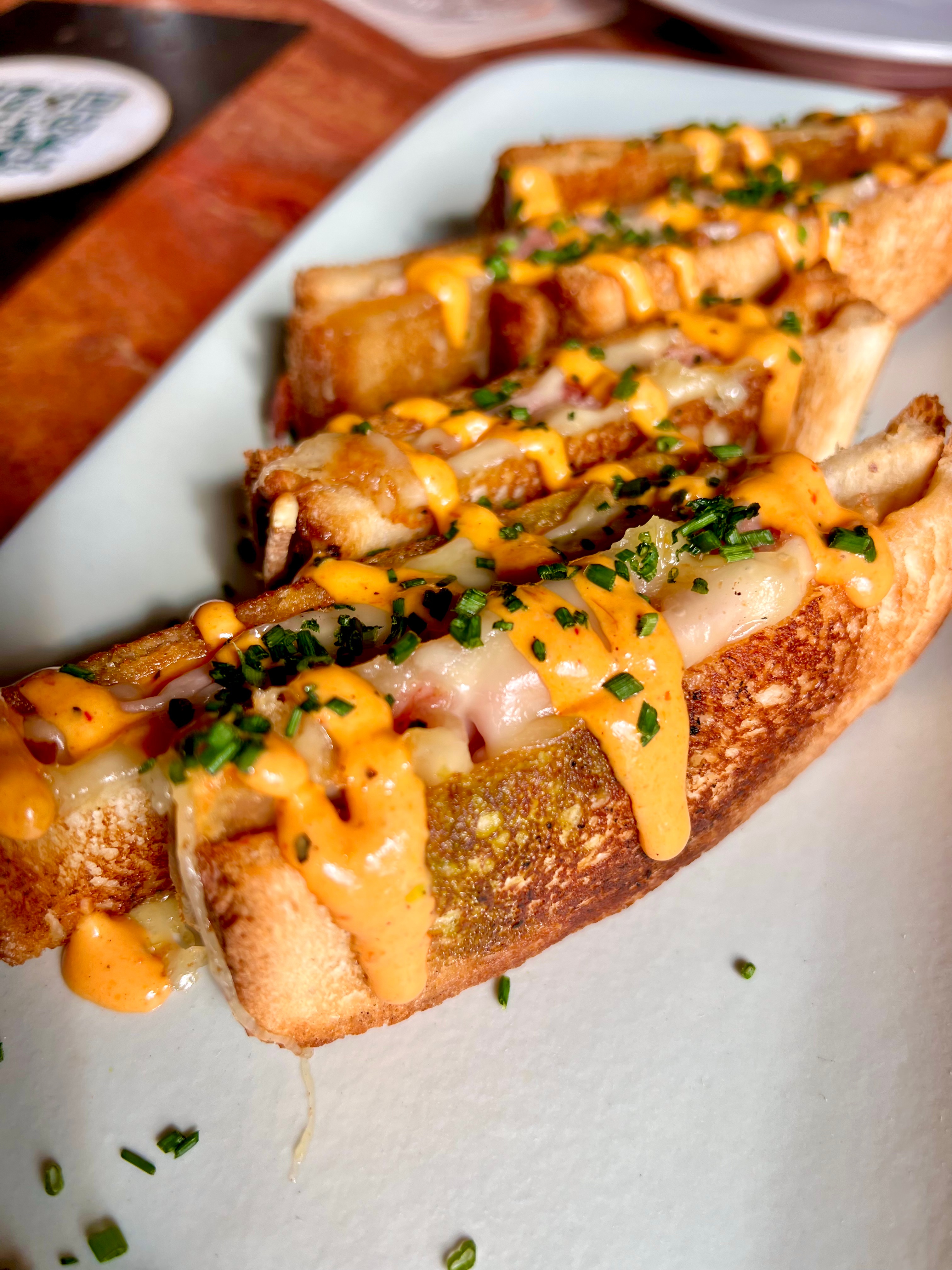 On craque totalement et sans pudeur pour ce Croq qui se fait indécent de délices du jambon blanc à la belle facture, du beurre citronné et du comté ultra fondant. La sauce Dallas, cette purée de poivrons grillés au bbq puis mixés d’une pâte de curry rouge et montée à l’huile fumée, comme une mayonnaise, dégouline de bonheur et titille le tout avec peps et engagement. Le pain, fait maison, enveloppe ce petit monde avec stature et moelleux à la fois. Le tout est terriblement vibrant et sensuel de gourmandise.