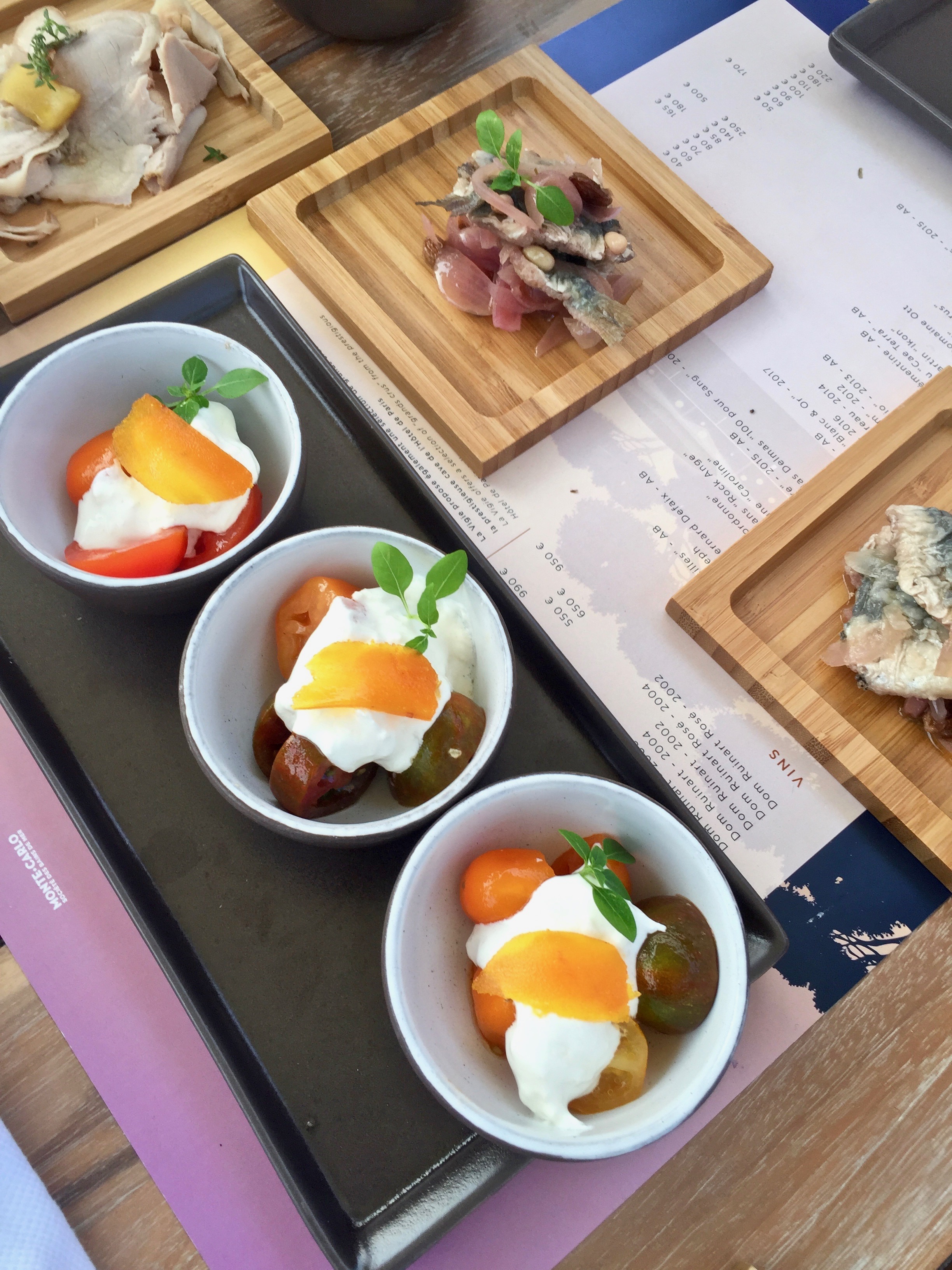 Burrata, salade d’orecchiette, tomate et basilic, bottarga de mulet / Porchetta de cochon fumé au miel /Anchois marinés à la Sicilienne ©lepetitlugourmand